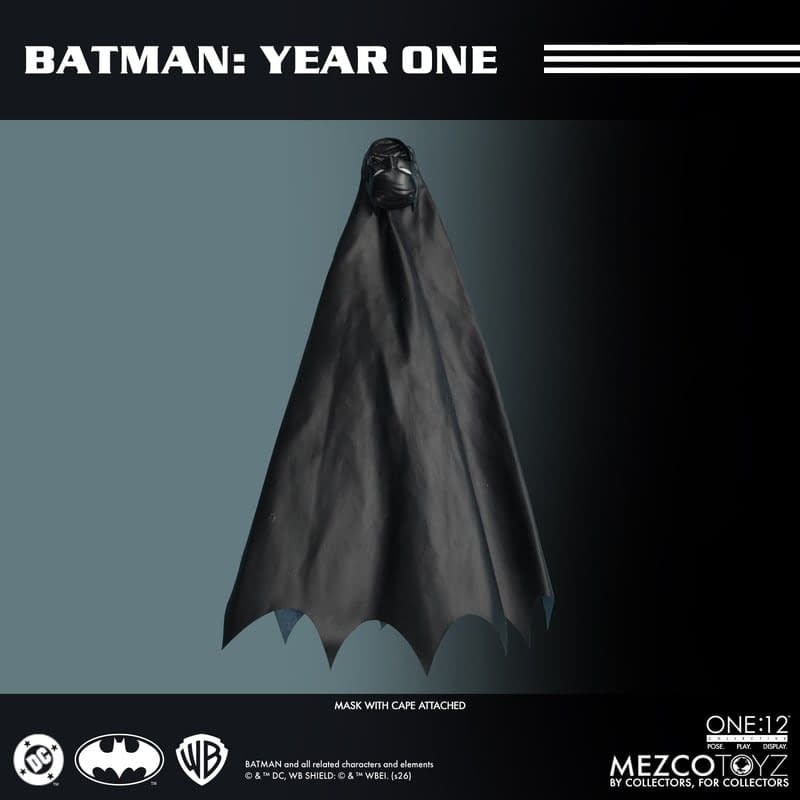 "Straight from the pages of Batman: Year Oe, comes the Dark Knight at the very beginning of his war on crime. With unstoppable determination, Batman forges his path while refining his use of intimidation, technology and grit to create the mythic legend he is destined to become. Outfitted in a comic-accurate, tailored cloth suit with a wired cape, allowing Batman to strike dramatic, grounded poses straight from the iconic storyline."