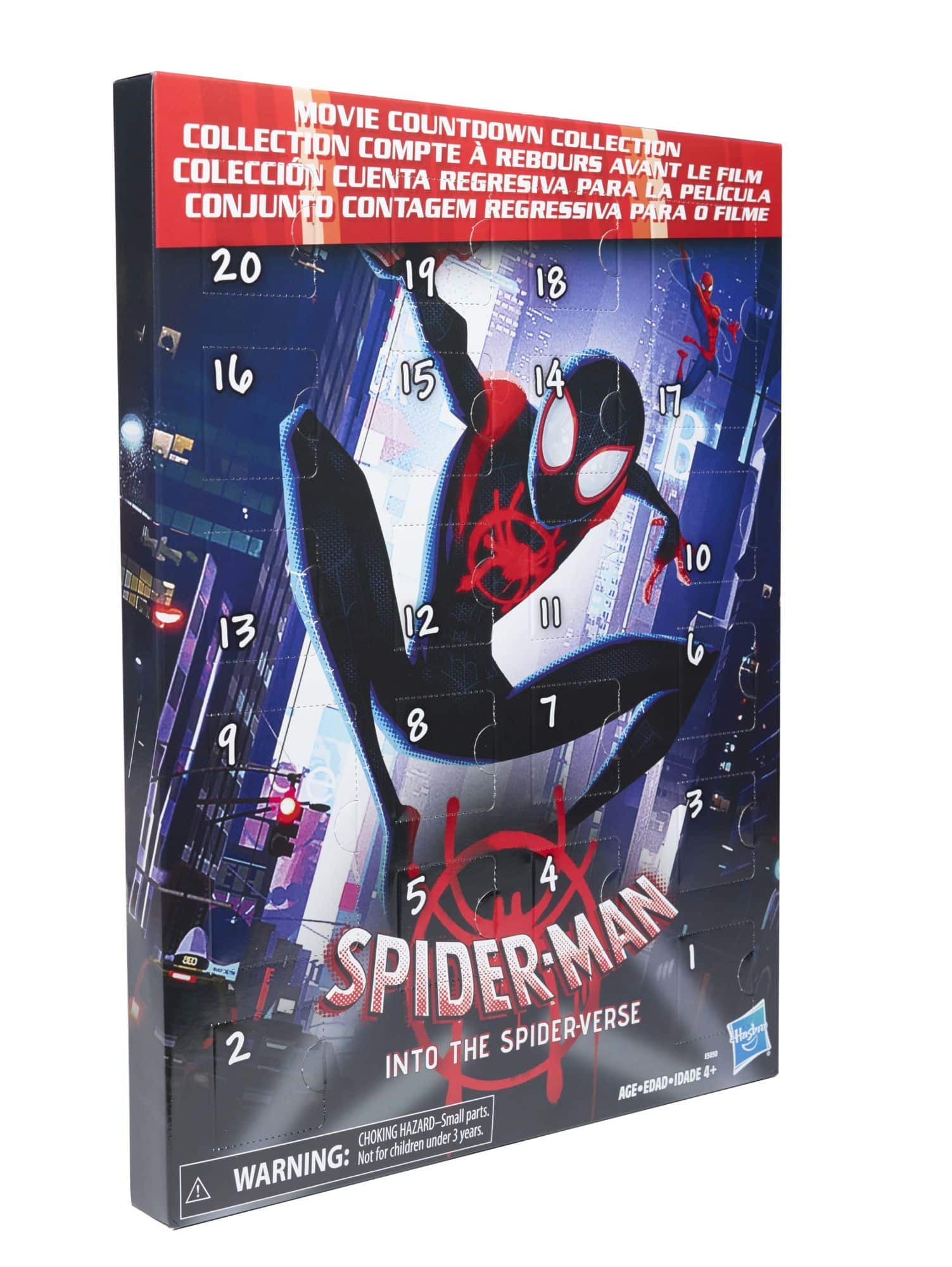 Get ready to see MILES MORALES and a whole new cast of mask-wearing web slingers swing onto the big screen with the SPIDER-MAN: INTO THE SPIDER-VERSE Movie Countdown Collection! Count down to the release of SPIDER-MAN: INTO THE SPIDER-VERSE with a countdown collection packed with Spider-Man figures, stickers, and surprises! Includes 14 figures, 4 stickers and 2 cardboard builds. Available at most major retailers and on HasbroToyShop.com.