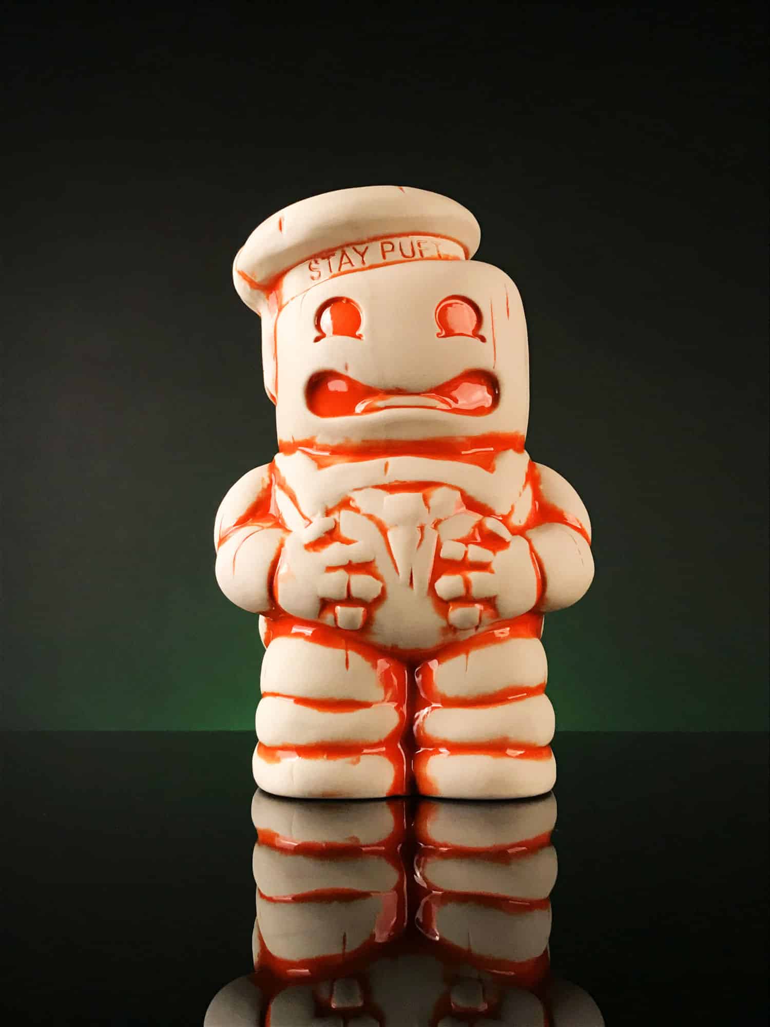 - Stay Puft Marshmallow Man Tiki Mug – Cross the Streams Variant Choose the form of the Destructor! And that form is a tiki mug! The Stay Puft Tiki Mug is designed by Joe Allard, sculpted by Tufan Sezer, and produced in association with Tiki Farm, it holds approx. 36oz, and is 8" in height. This version, exclusive to DesignerCon, features and orange wiped glaze. Edition of 150. $65