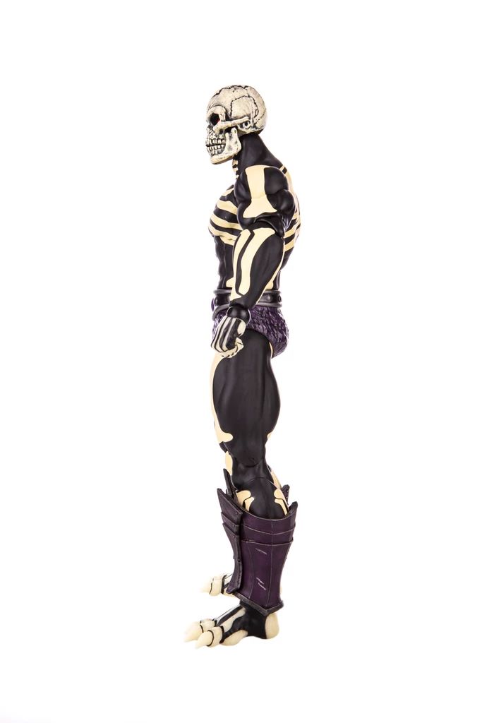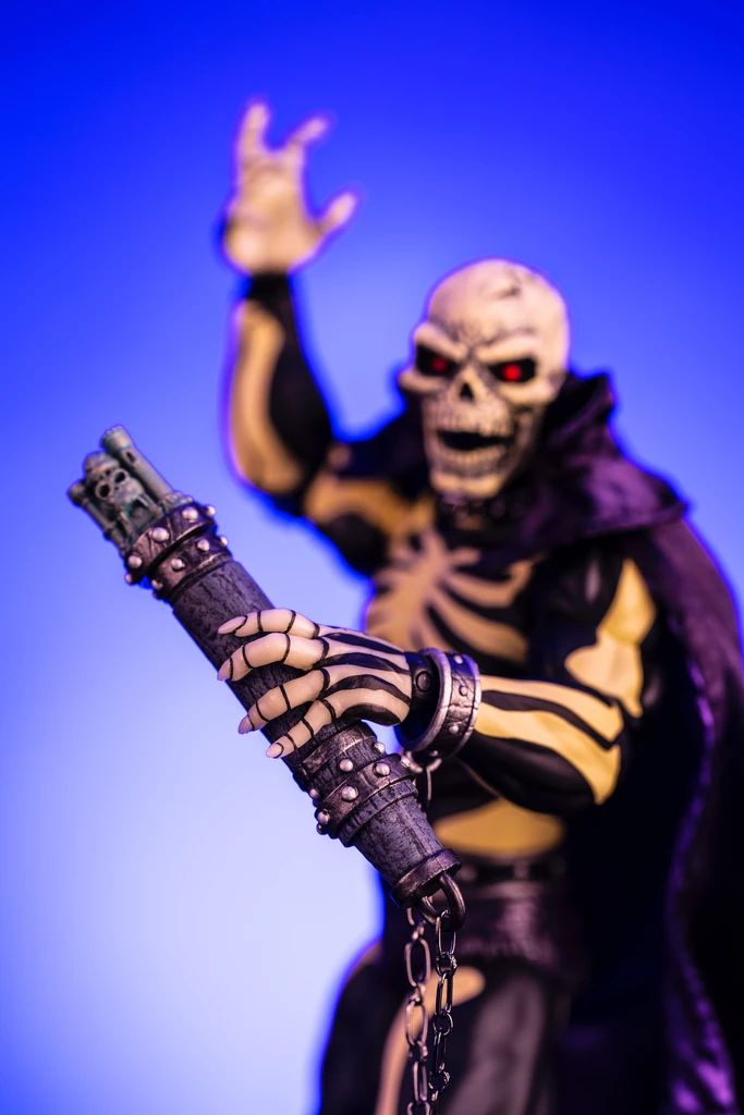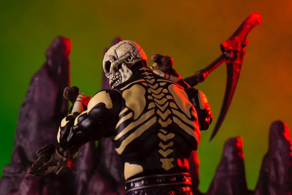 Mondo has released a Masters of the Universe figures in the past but this one right here takes the cake. Next in their Masters of the Universe figure line is none other than the villain Scareglow. This character features over 30 points of articulation that is highly detailed and is ready to defeat He-Man once and for all. The figure comes loaded out with accessories as well as special features. He does have a removable in possible fabric cape to give you that extra blowing in the wind feel. He does come with his scythe of doom, two swords, interchangeable hands and more. What is one of the coolest features of this figure is he does glow in the dark. When you turn off the lights in his skeletal decals glow green. The packaging for this figure is pretty kick-ass too with glow-in-the-dark art as well. give he-man someone to Bal down to enhance your masters of the universe collection today.
