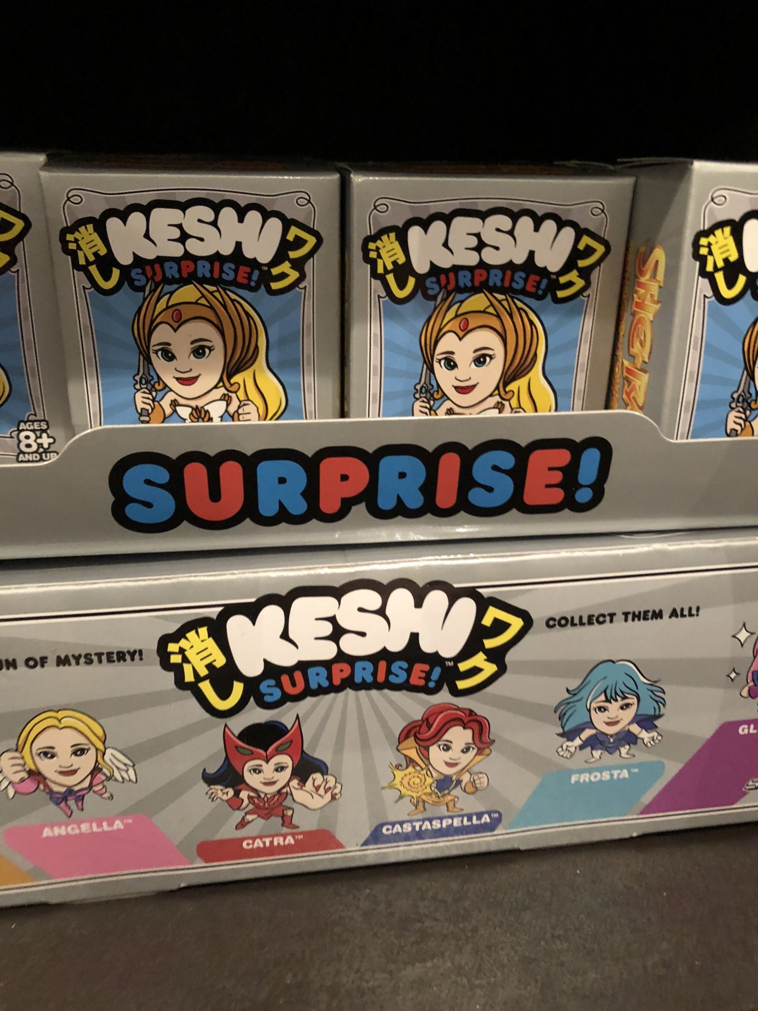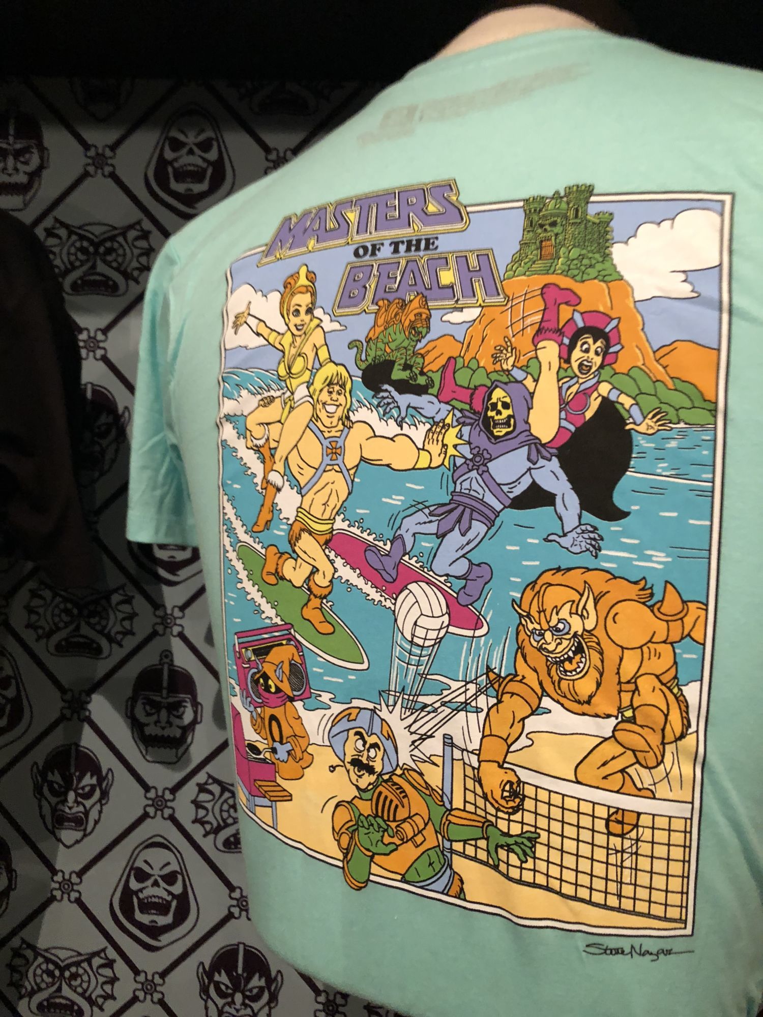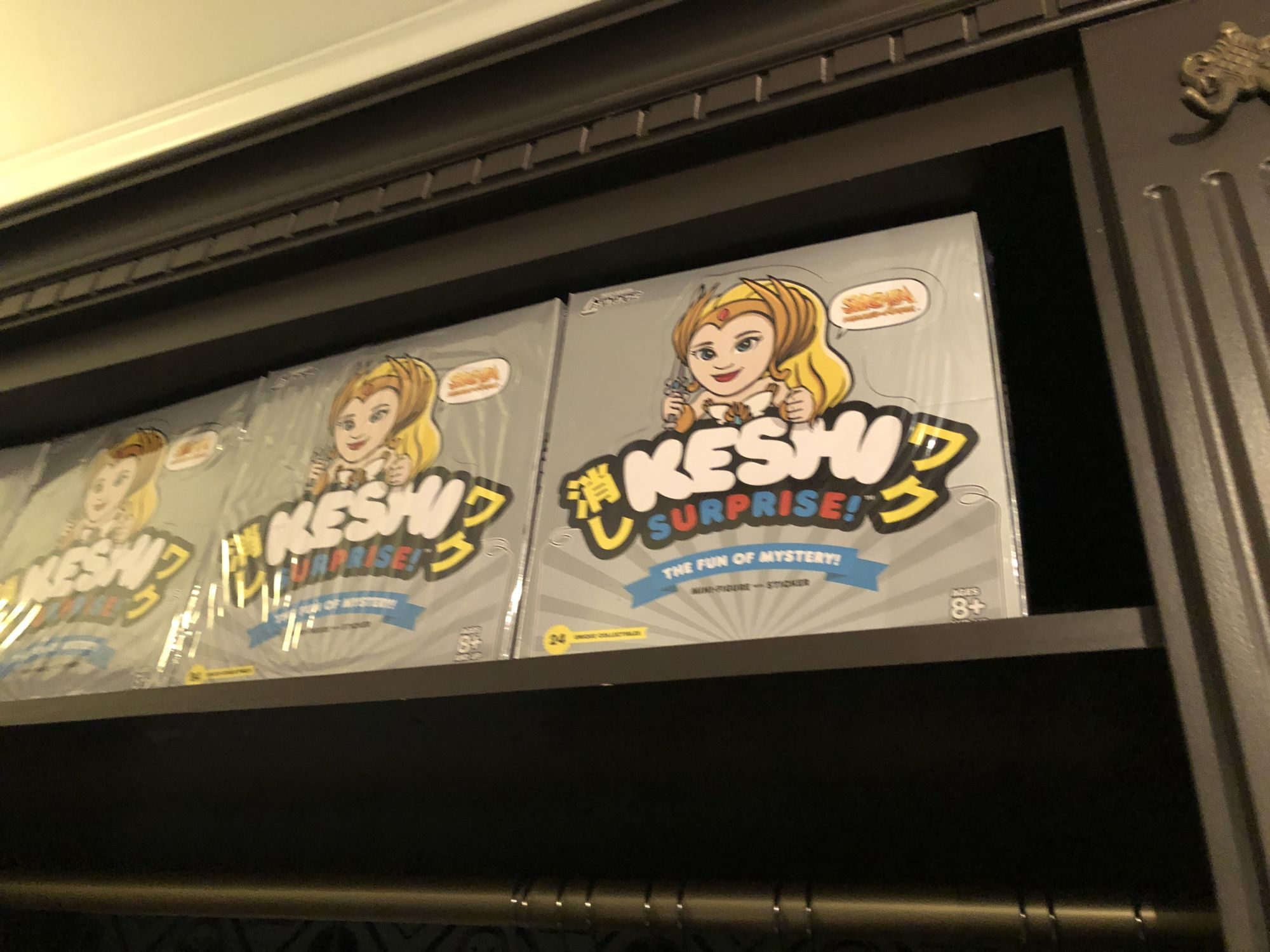 A Hordak's Lair sign covered up the Skeletor one as you got to the store front, and once inside there was a plethora of exclusive merch and figures to buy. Besides the Prince Adam, they had a She-Ra/Hordak ReAction figures two-pack, many t-shirts (I picked up that Masters of the Beach shirt as soon as I saw it), single carded Masters of the Universe figures from the latest wave of Orko, Ram Man, Scare Glow, Faker, Evil-Lyn, and Mekaneck. Rounding out the exlcuives were two sets of Keshi figures, one featuring She-Ra, and one featuring The Horde with blind box mini-figures inside.