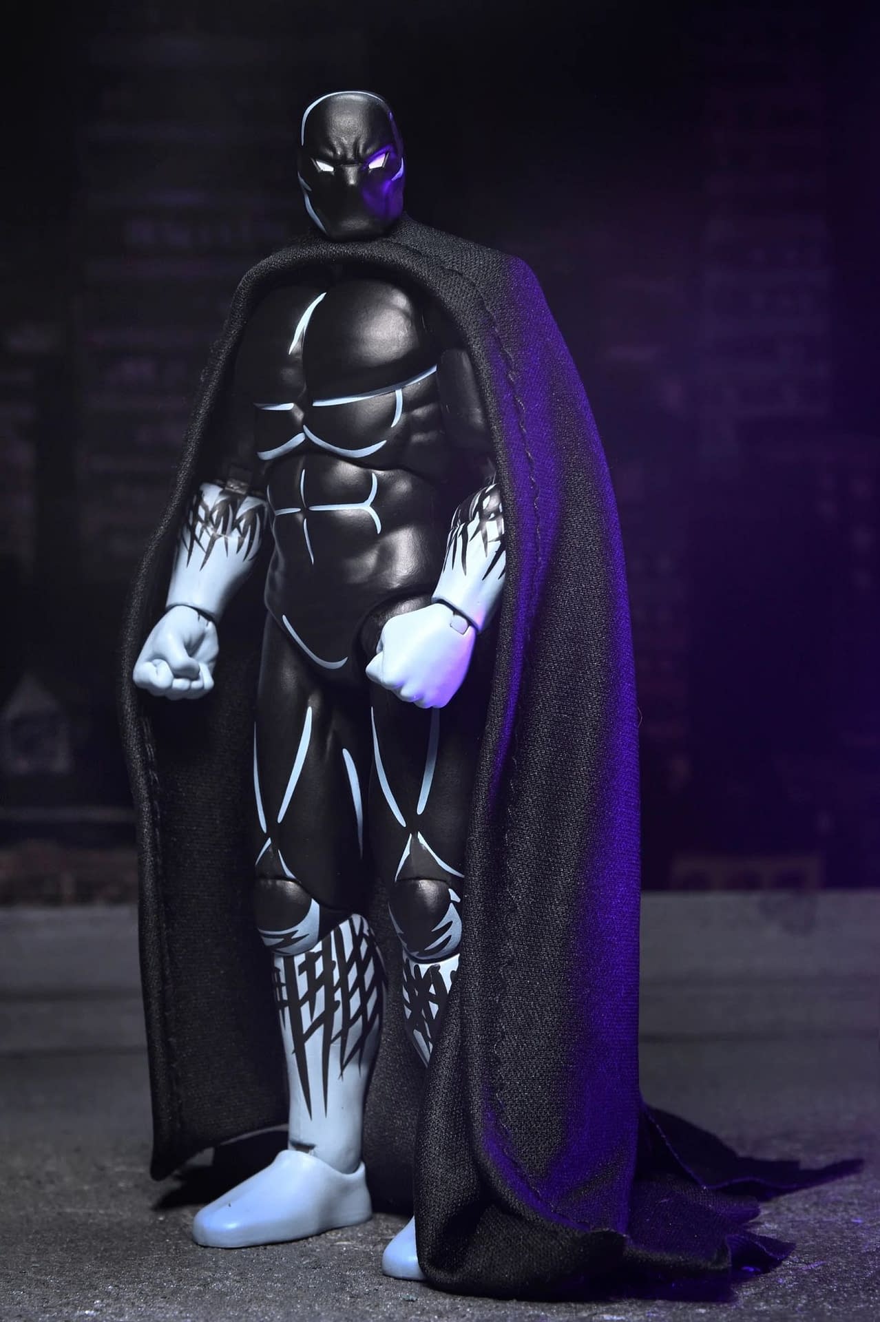 Nobody is a vigilante ally from the Teenage Mutant Ninja Turtles comics published by Mirage Studios. He was created by Kevin Eastman and Jim Lawson and was introduced in Tales of the TMNT #2 back in 1987. His real name is Officer David Witchell, and he is a police officer who becomes disillusioned with the justice system, taking on a new vigilante identity and calling himself "Nobody." Nobody dresses in a dark, full-body suit with a mask, similar to classic pulp heroes, and now NECA is bringing him to life with a new Mirage Studios-inspired figure.