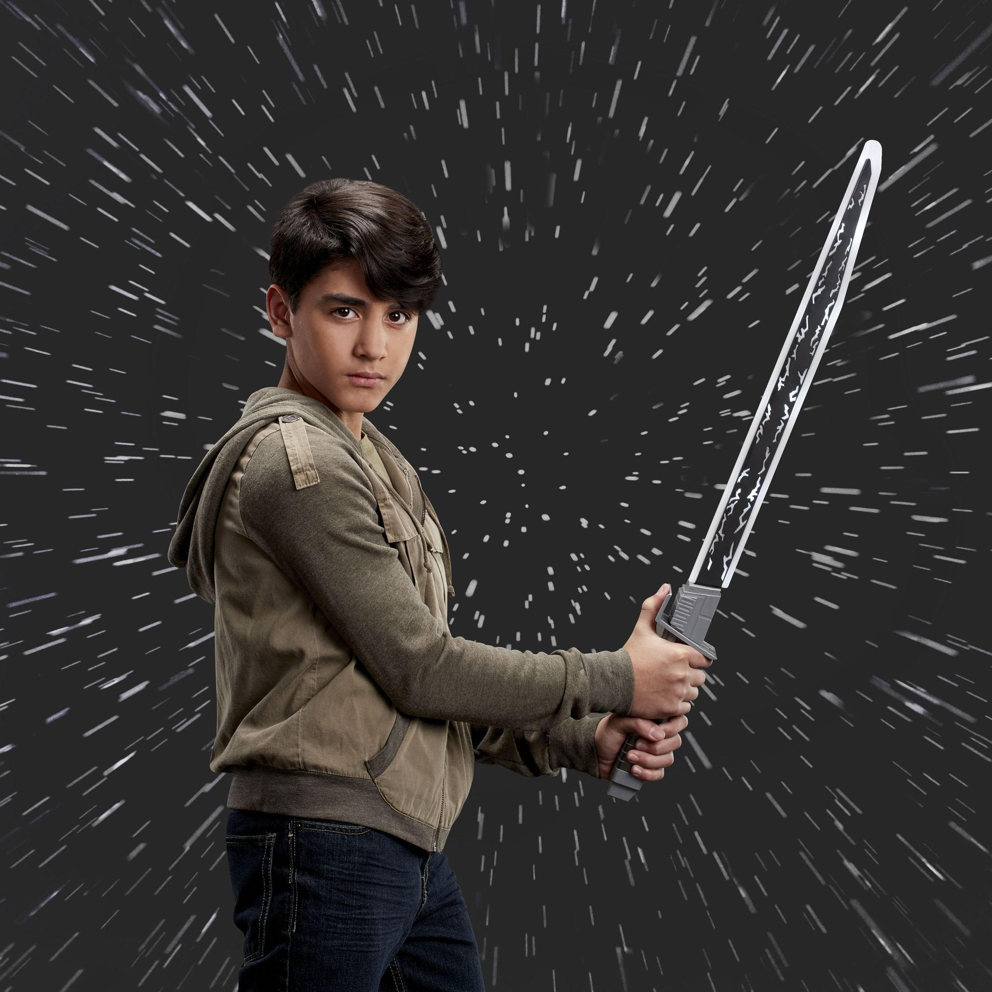 In the STAR WARS saga, this one-of-a-kind black-bladed Lightsaber has been a symbol of MANDALORIAN power for generations. Imagine wielding a black-bladed Lightsaber with exciting electronic light and sound effects! The STAR WARS THE MANDALORIAN DARKSABER ELECTRONIC LIGHTSABER features electronic light effects, classic Lightsaber effects, awesome battle sounds when kids swing the Lightsaber, and crackling lightning sound and light effects when they hold down the button on the hilt! Imagine ruling over MANDALORE with the MANDALORIAN DARKSABER! Includes lightsaber and instructions. Requires 3 1.5V AAA batteries, included. Available at most major retailers.