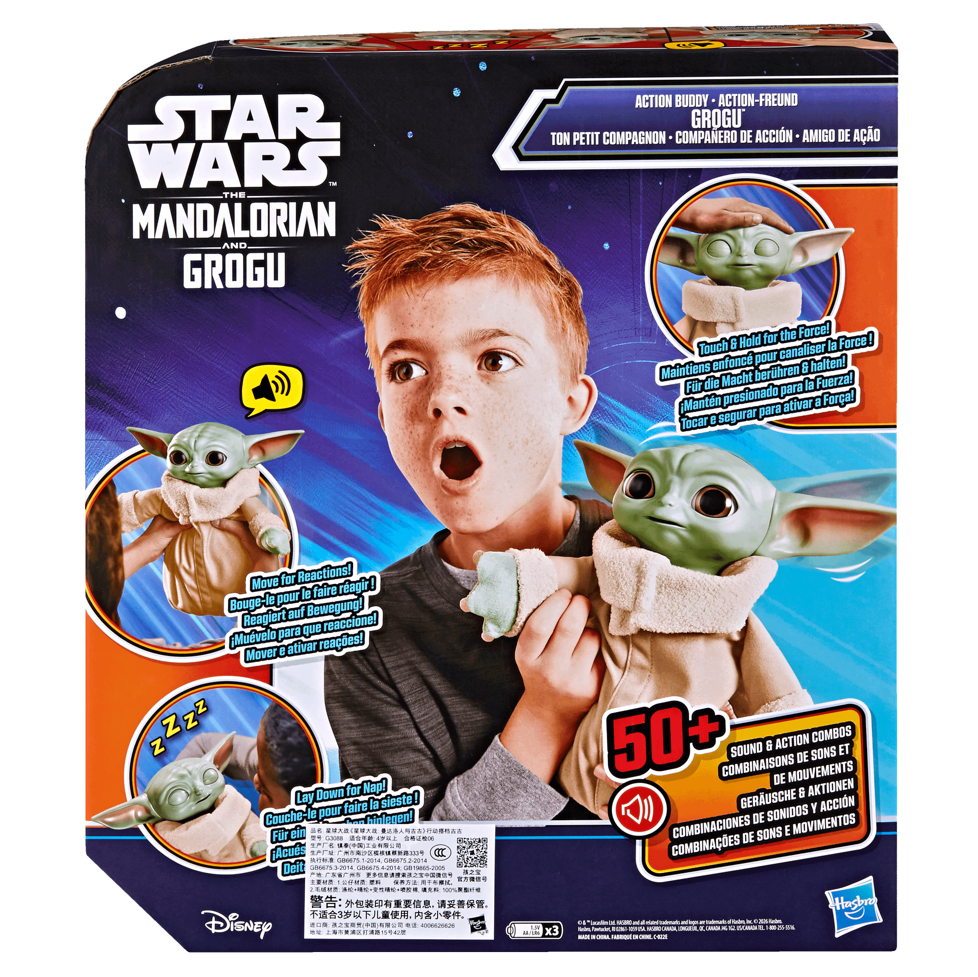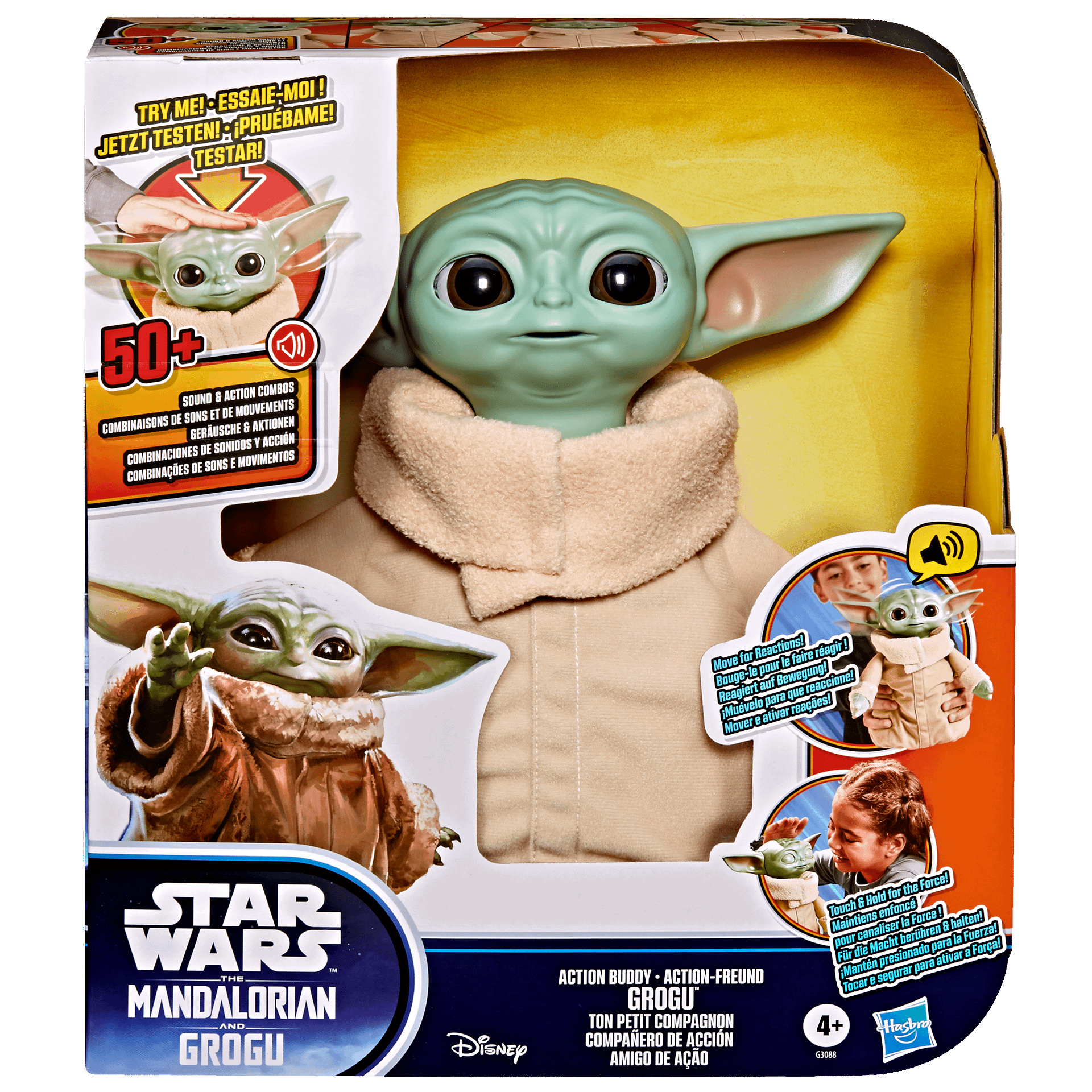 - Grogu features over 50 unique sound and motion combos activated by touch for immersive play