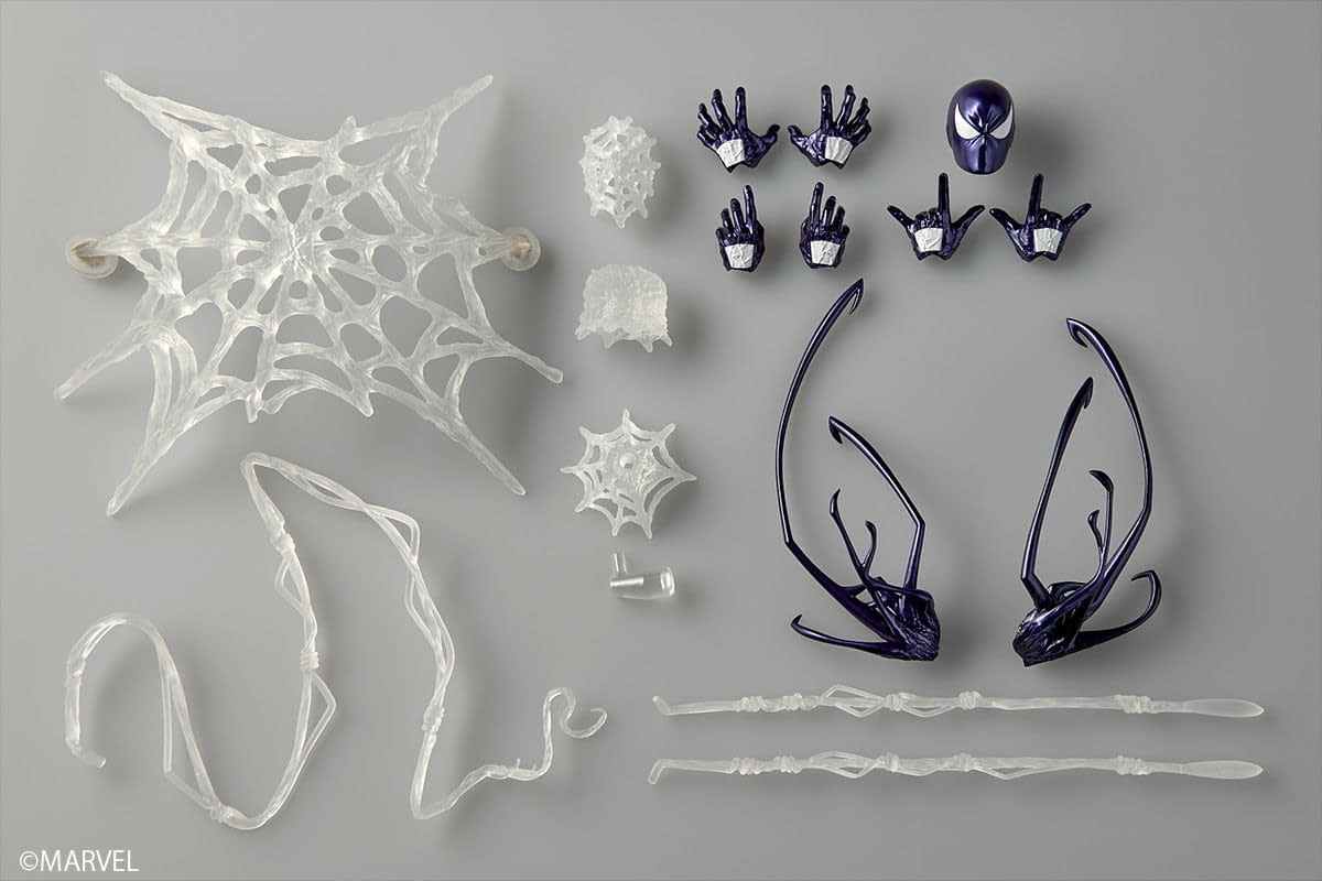 Katsuhisa Yamaguchi's masterful sculpting, combined with Revoltech's articulated joint system, allows for dynamic, comic-inspired action poses that truly showcase the symbiote's unpredictable, fluid movements. Of course, a nice set of accessories is included, such as swappable hands, web effects, and symbiote parts, to showcase Spider-Man resisting the suit's control. For collectors who pre-order through Kaiyodo, they will also get a secondary head sculpt. Pre-orders are already live for around $70, with the figure set to arrive in July 2026.