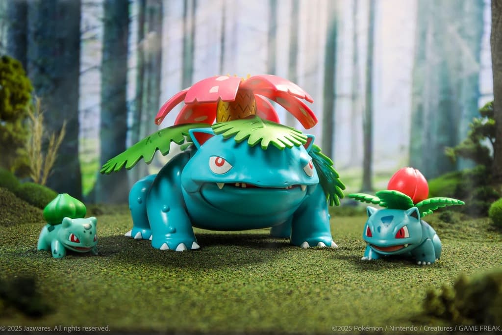 The fun continues with 4.5‑inch Blastoise and Charizard figures, which are also added to this set, with both being able to shoot projectiles, allowing them to be ready for battle. Rounding out the collection is a true beast with a 12‑inch Venusaur, which is designed to tower over the others and serve as a showpiece centerpiece. The Pokémon Special Series Kanto Region First Partners Set is packaged in a premium display case with a holographic cover lid and a light‑up interior and will surely be a must-have collectible for any Pokémon Master. Trainers can purchase this set exclusively on the Jazwares Vault right now for $100, and it is ready to ship.