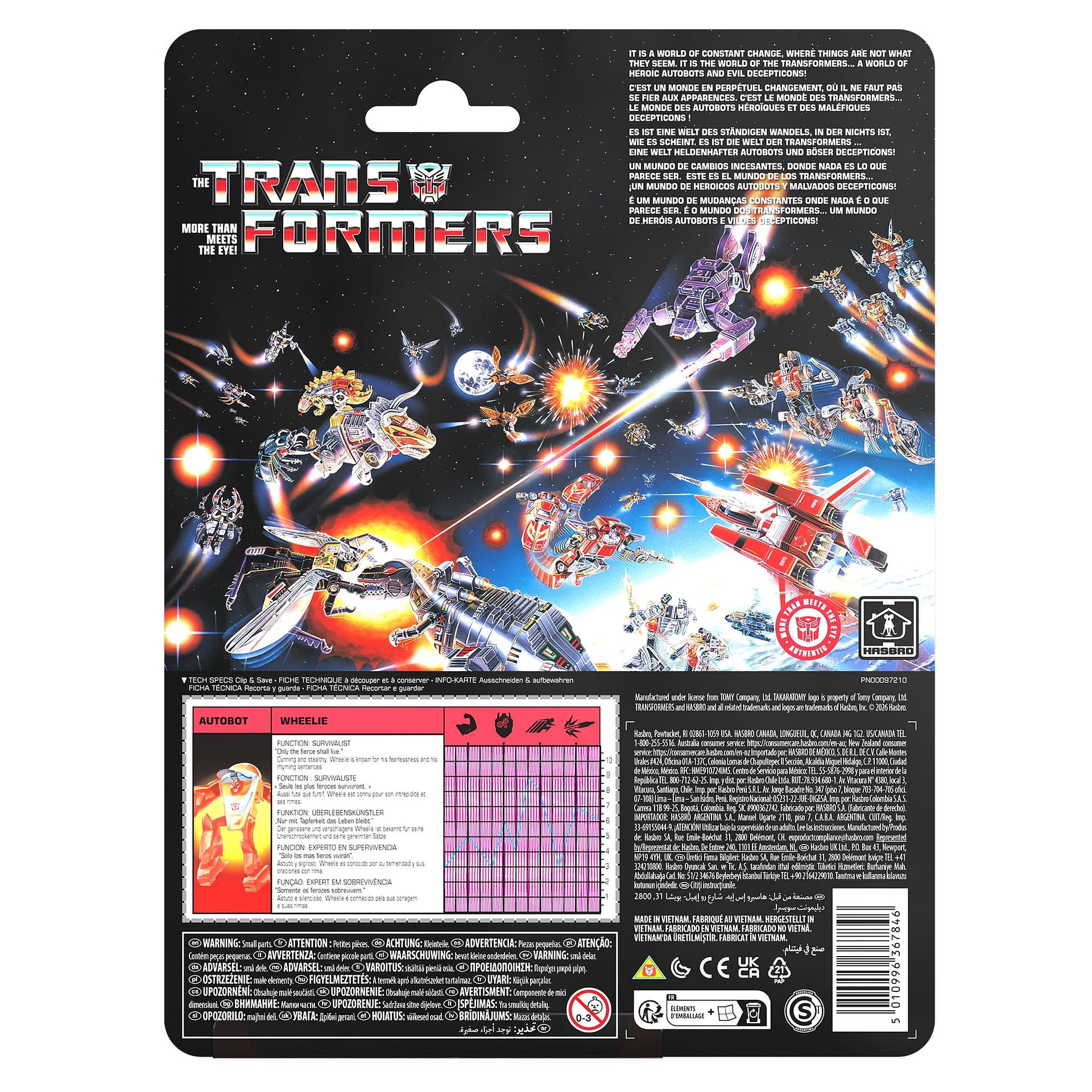 - Wheelie comes in retro-inspired packaging with updated details and articulation from the G1 era