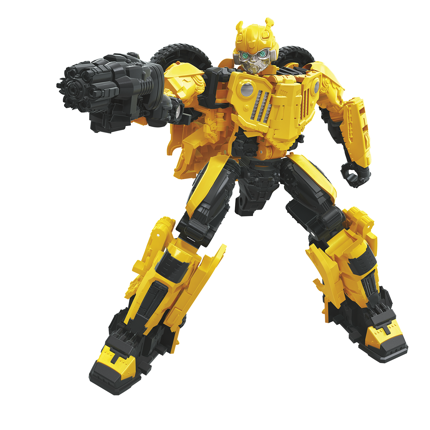 The Studio Series 57 Deluxe Class OFFROAD BUMBLEBEE action figure is 4.5 inches tall, features vivid movie-inspired deco, and converts from robot to Jeep mode in 26 steps. Use the removable backdrop to display OFFROAD BUMBLEBEE in the Canyon Attack scene from TRANSFORMERS: Bumblebee, where BUMBLEBEE goes toe-to-toe with BLITZWING in a canyon-shaking battle. The Studio Series 57 Deluxe Class OFFROAD BUMBLEBEE figure is highly articulated for poses and comes with a detailed weapon accessory.