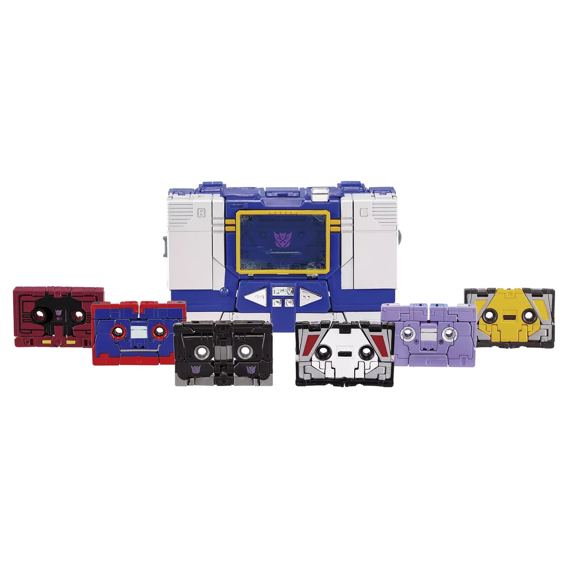 - In cassette mode, both Transformers action figures can fit in chest of MPG-19 Soundwave (sold separately, subject to availability). Figures can also fit inside included barrier cases.