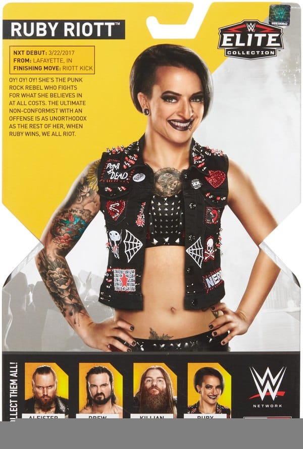 One of the most promising female performers on the main roster and leader of the Riott Squad, Ruby Riott hits the WWE NXT line and from the looks of these pictures features one of the best scans they have ever done for anyone. Coming with her entrance vest, the amount of detail on this one is incredible. They did a great job capturing every detail on not only her gear, but her tattoos as well.