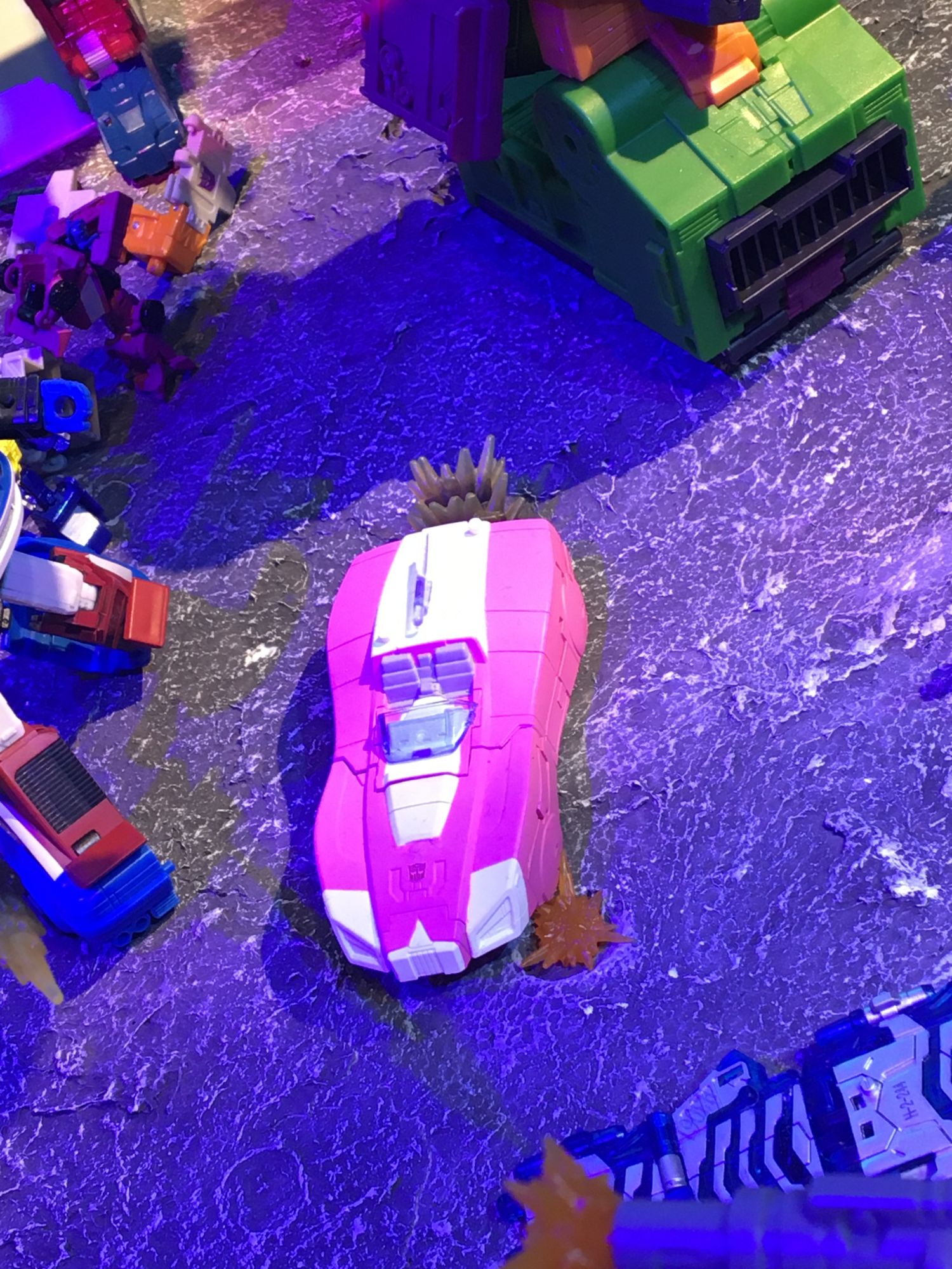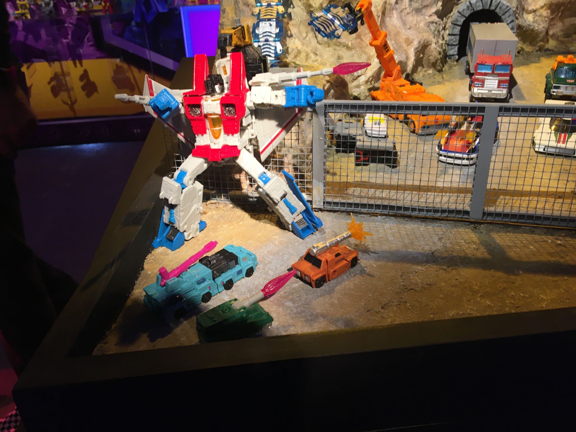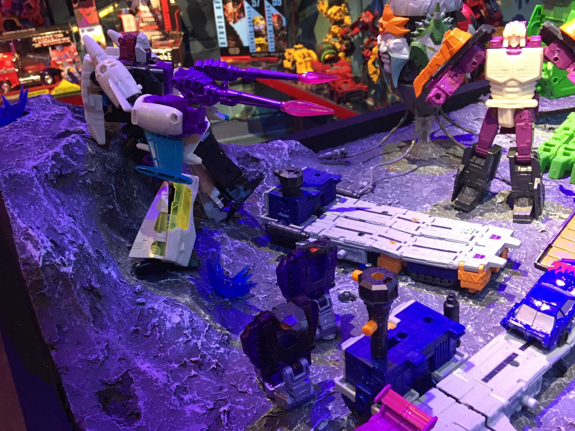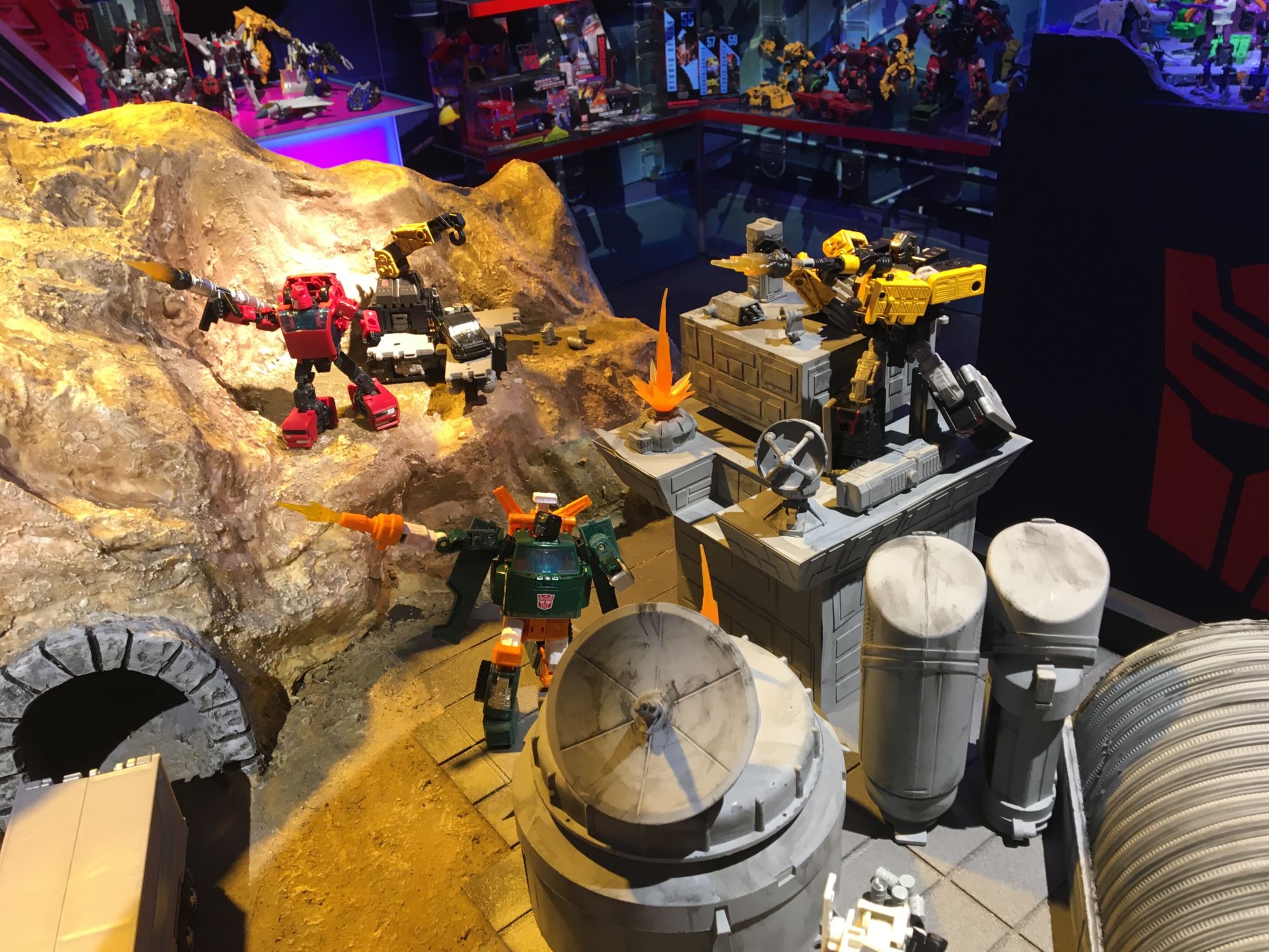 Previously displayed at various conventions, including New York Comic Con 2019, was the custom diorama of the G1 inspired Earth battle scene featuring the Autobots and Decepticons already on-planet and dealing with the battle they brought with them.