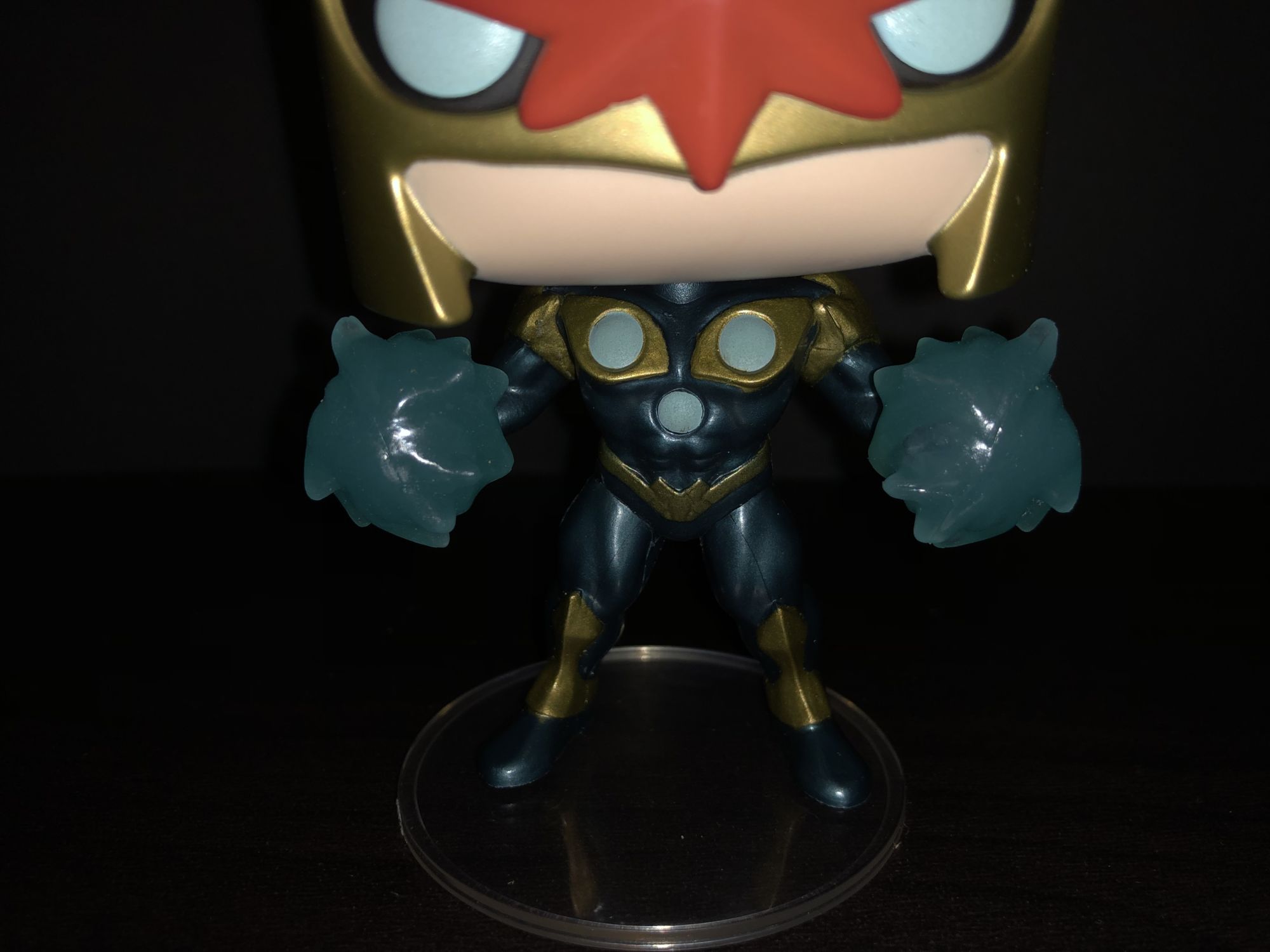 His costume is also great. I like the sculpt and I love the mold for this. The Proto for this would be a dream to own. Hell any Marvel proto would be a dream to own. No one little secret that I noticed is Nova Glows in the Dark! Usually, this is told on the sticker but you can tell by the paint sometimes. His eyes, chest and his cosmic powers all glow blue. This was a delightful surprise and I'm glad he does because it fits him perfectly. This Funko was a nice surprise and I'm glad I snagged one up.