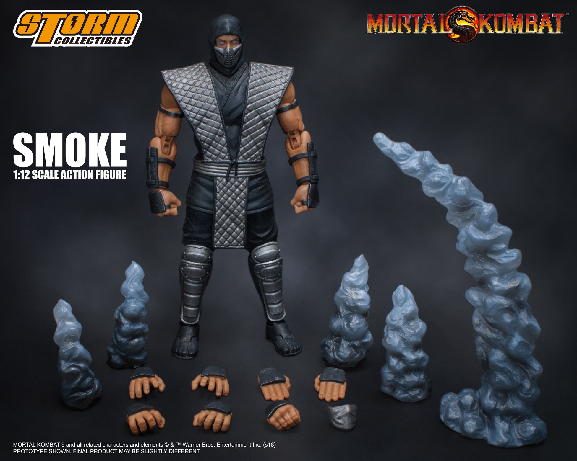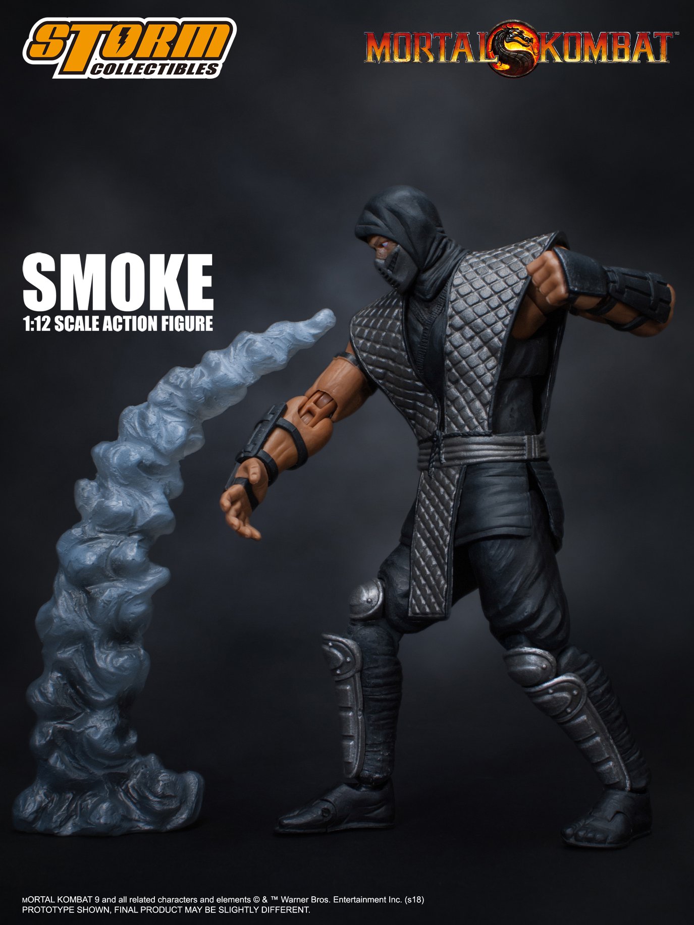 Smoke is able to transform into a wisp of smoke. He has no memory of his childhood, his only family is the Lin Kuei, the younger Sub-Zero who is like a brother to him. It has been Smoke's hope that through the Lin Kuei he will discover his past-and the origin of his power. This figure is being offered as a New York Comic Con exclusive by Storm Collectibles.