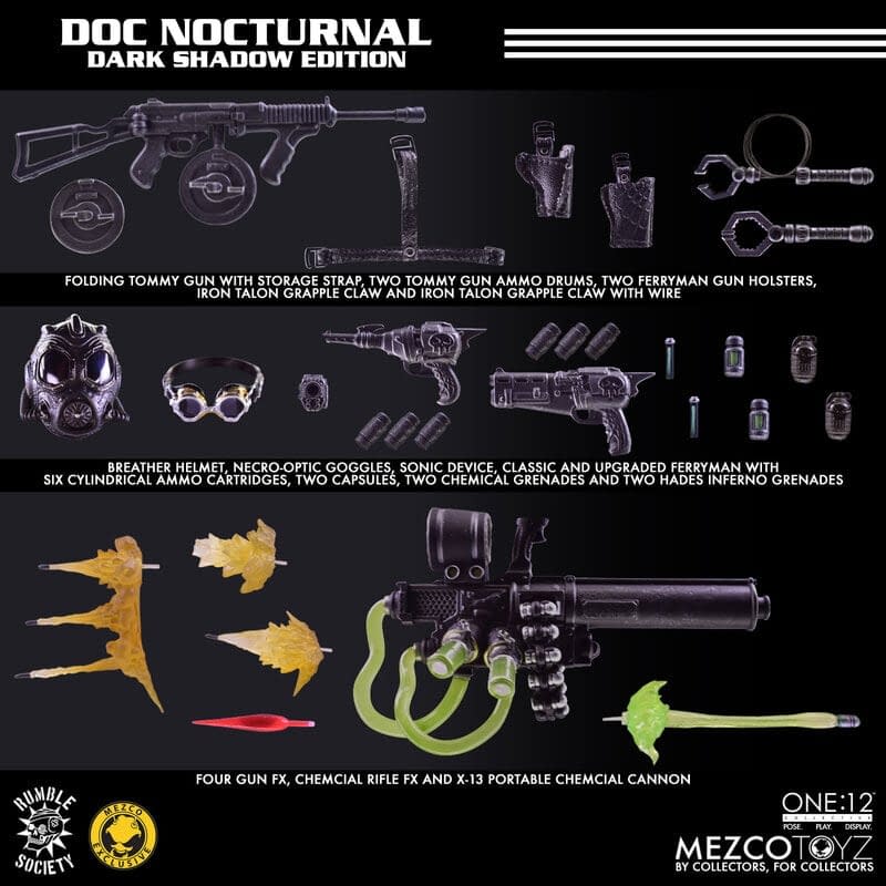 A new selection of limited edition One:12 Collective Rumble Society figures are here from Mezco Toyz with Doc Nocturnal: Dark Shadow Edition