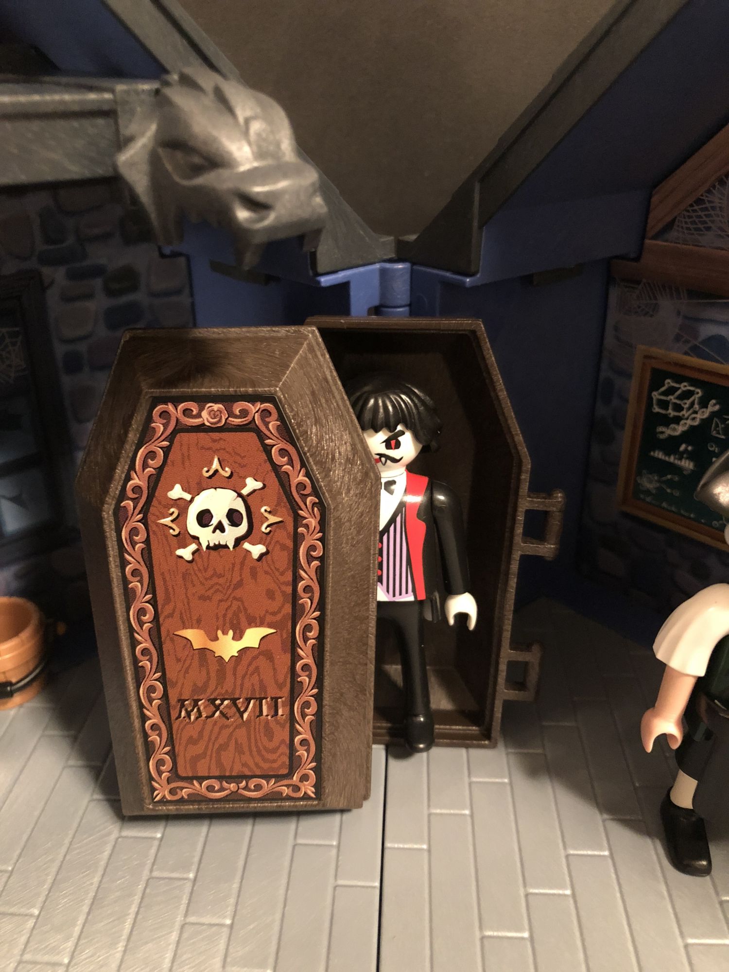 Speaking of figures, they are my favorite part of this set. Playmobil figures are some of my favorites, and they can make as many monsters as they want, I will buy them all. My favorite is the grim reaper, he has a little sinister edge to him that I dig. I also like The Mummy with his goofy grin, Dracula and how fancy he looks. I love them all. I must track down the Wolf Man and Witch two-pack to complete the set soon.