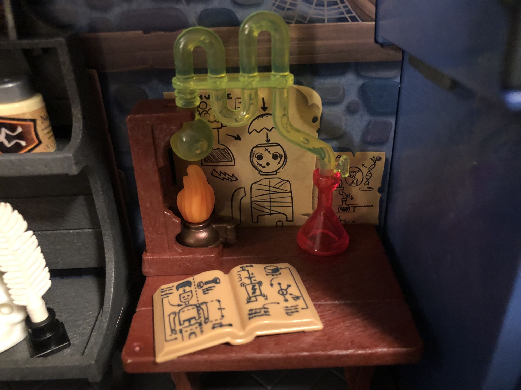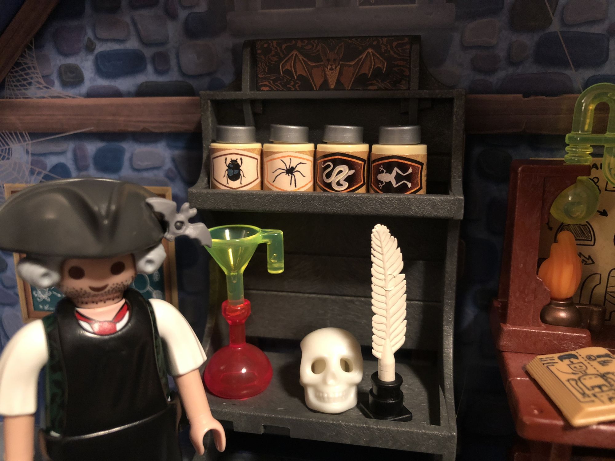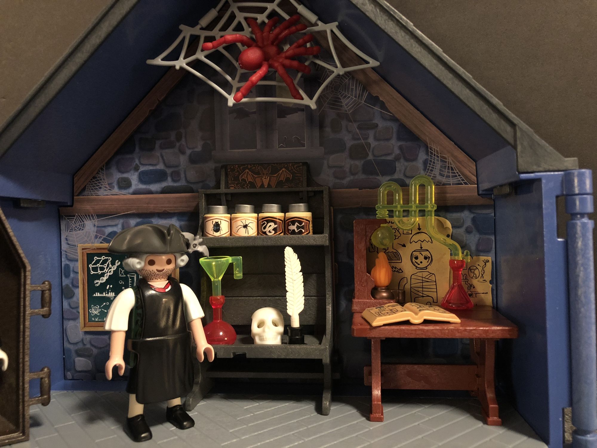 Once you get everything out and start assembling this thing though, you can't help but smile. There are so many little details on this thing, from the jars you can put on the shelf to the diagrams on the walls and inside the little book, you can tell they put a lot of effort not only into how this displays, but in its playability for kids. There are a lot of small pieces, so for the real little ones make sure you are paying attention while they play, but this is fun as an adult too! it was a ton of fun to move the figures around and play around with the display.