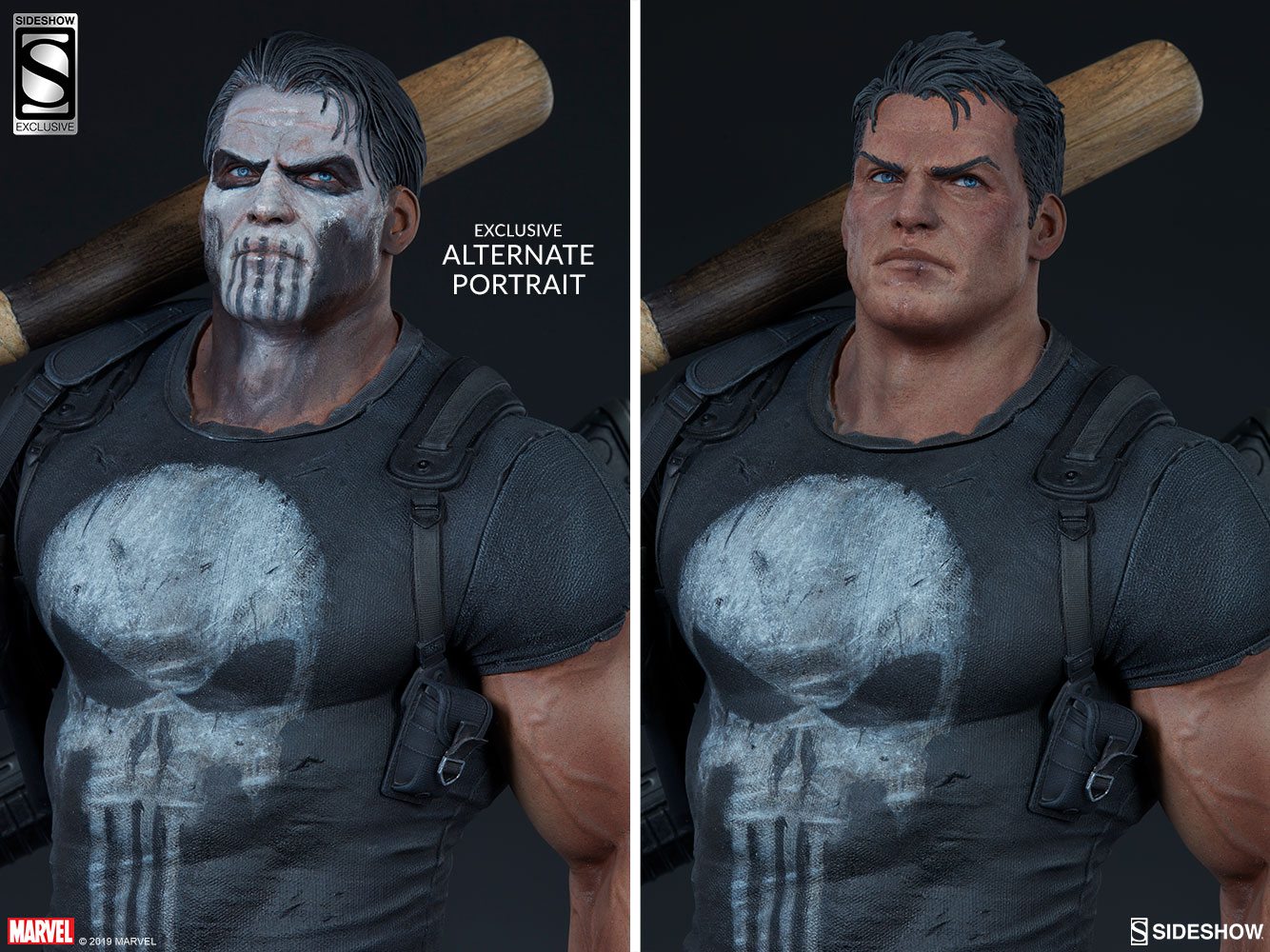 The Exclusive Edition of The Punisher Premium Format™ Figure includes an alternate portrait featuring skull war paint. Camouflage Frank Castle with his iconic death's head symbol with this exclusive additional display option.