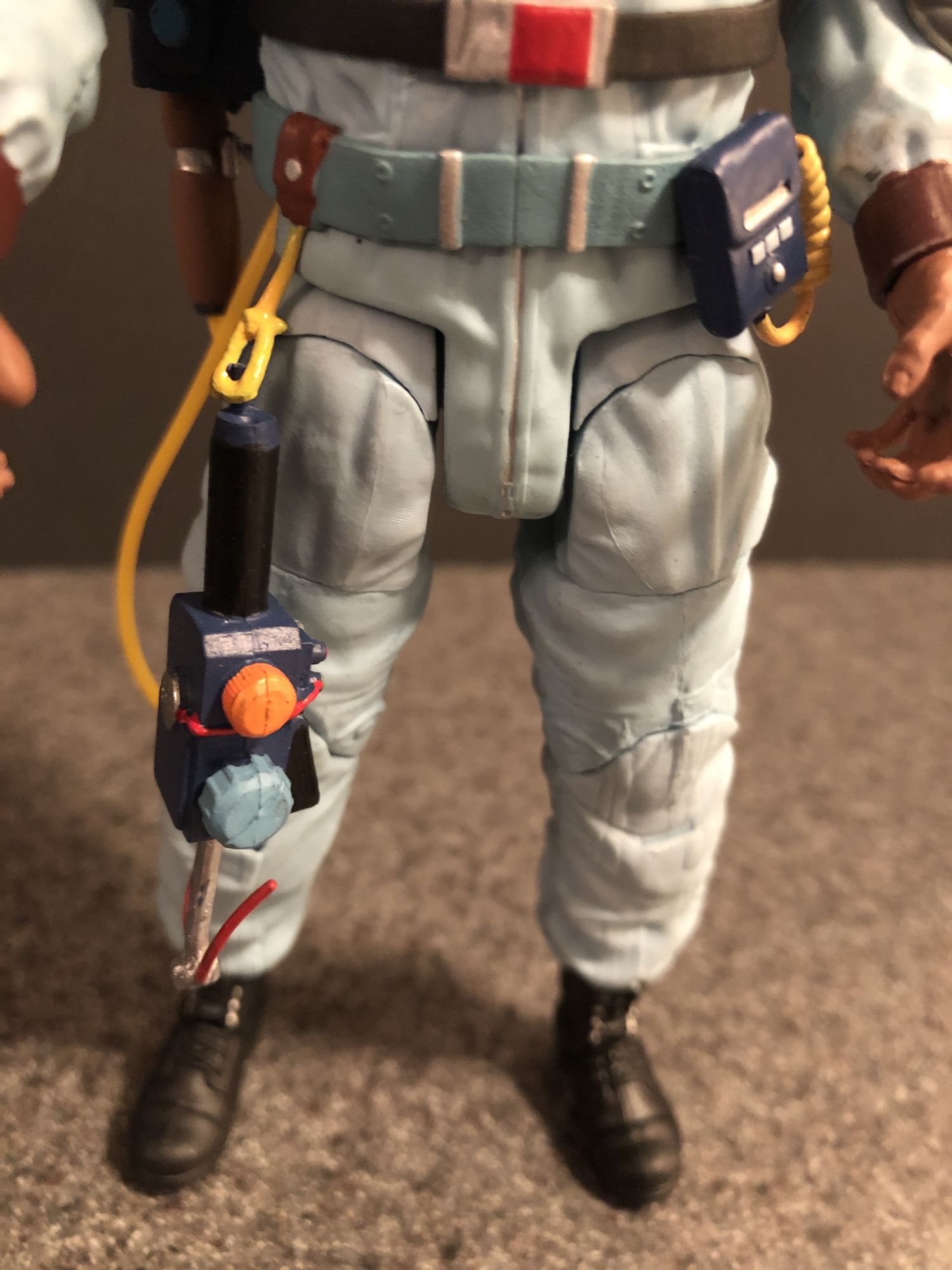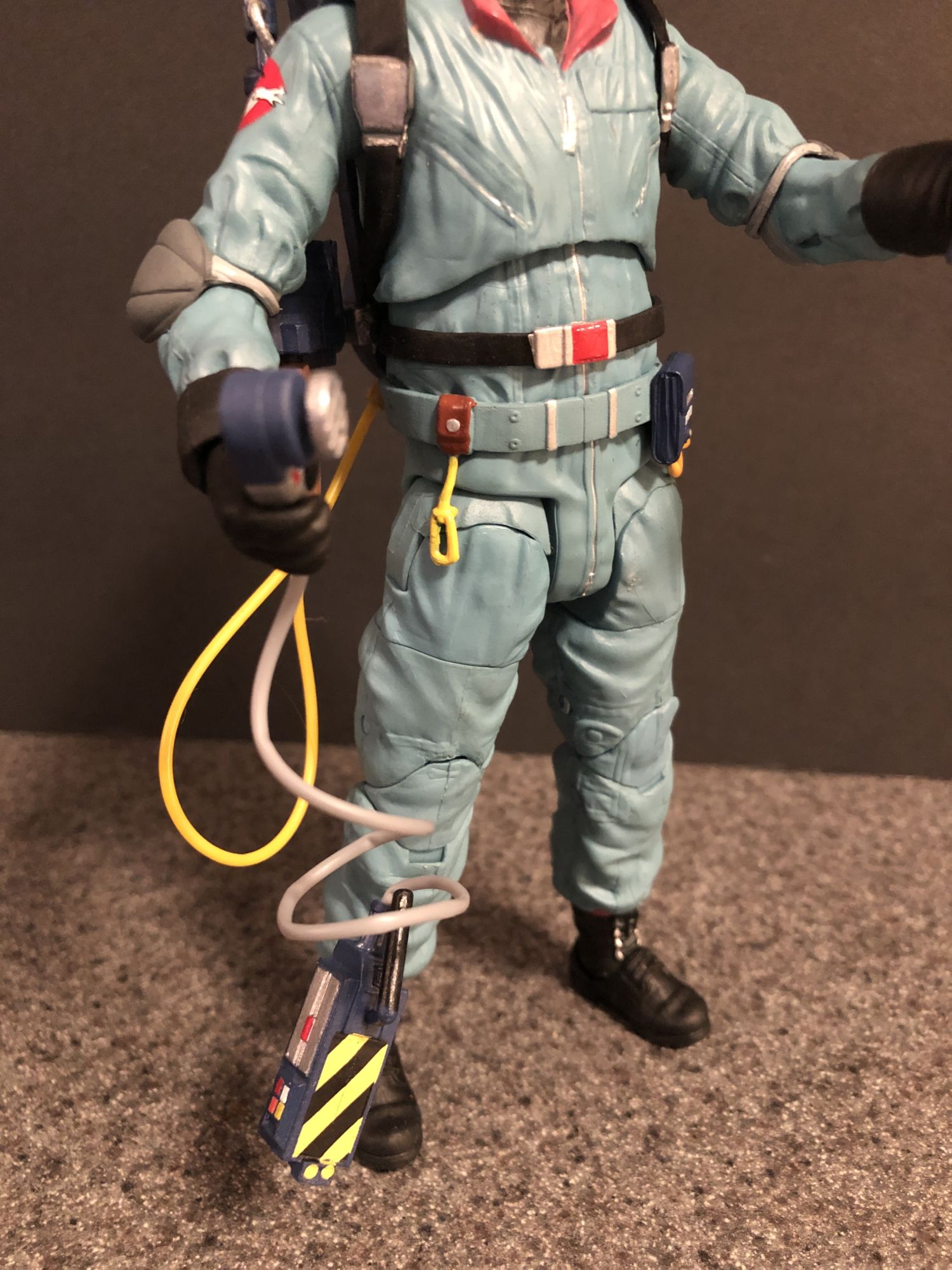 Next, only one thing prevents this WInston figure from being my favorite of all-time. The proton pack stream sucks. There is a little plastic attachment that goes on the end of the gun, and the stream is held in by a tiny peg. It snapped off instantly, rendering it useless. That was a huge bummer. The same thing happened to the Egon one. Other than that, no complaints. Winston comes with multiple interchangeable pairs of hands, all of which are easy to get on. The PKE meter hangs from his belt, and proton pack does not limit his movement at all. The details on the sculpts on these figures are so well-done as well, some of the nicer sculpts DST has done in awhile.