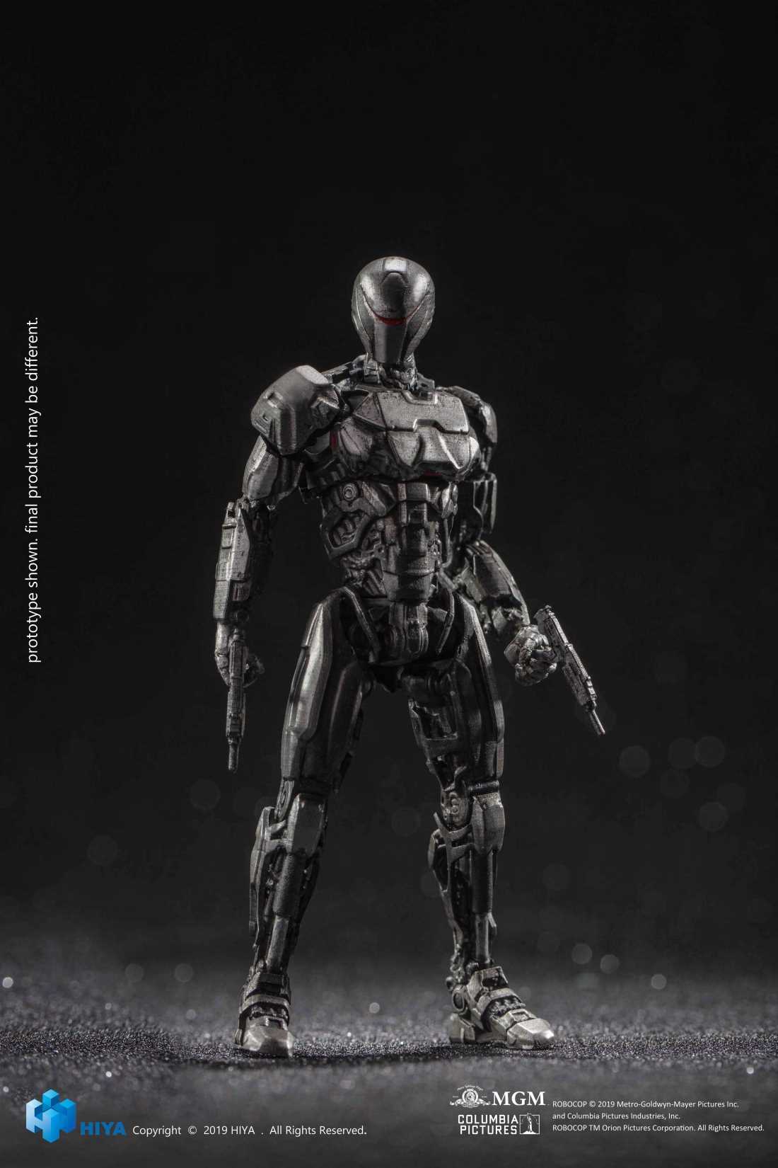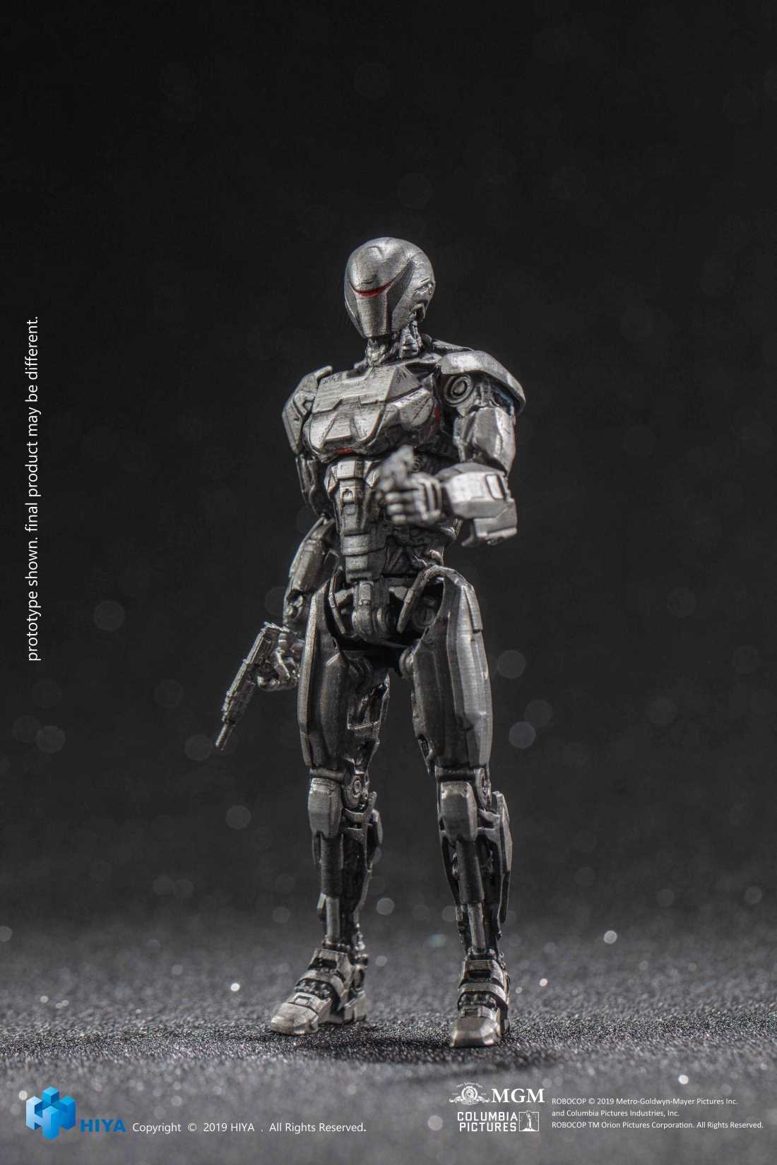 From Hiya Toys. A PREVIEWS Exclusive! From the 2014 remake of the classic 80's flick, Robocop, Hiya Toys presents a 2-pack of fully articulated 1/18th scale OmniCorp EM-208 Enforcement Droids! Their highly detailed mechanical designs are based directly on the O-Shield armor from the film, and the set includes interchangeable hands and pistols to pose them defending the peace or in fighting poses! Each 1/18 Scale EM-208 figure stands about 4 1/2″ tall. Add this unique set to your Robocop collection today!