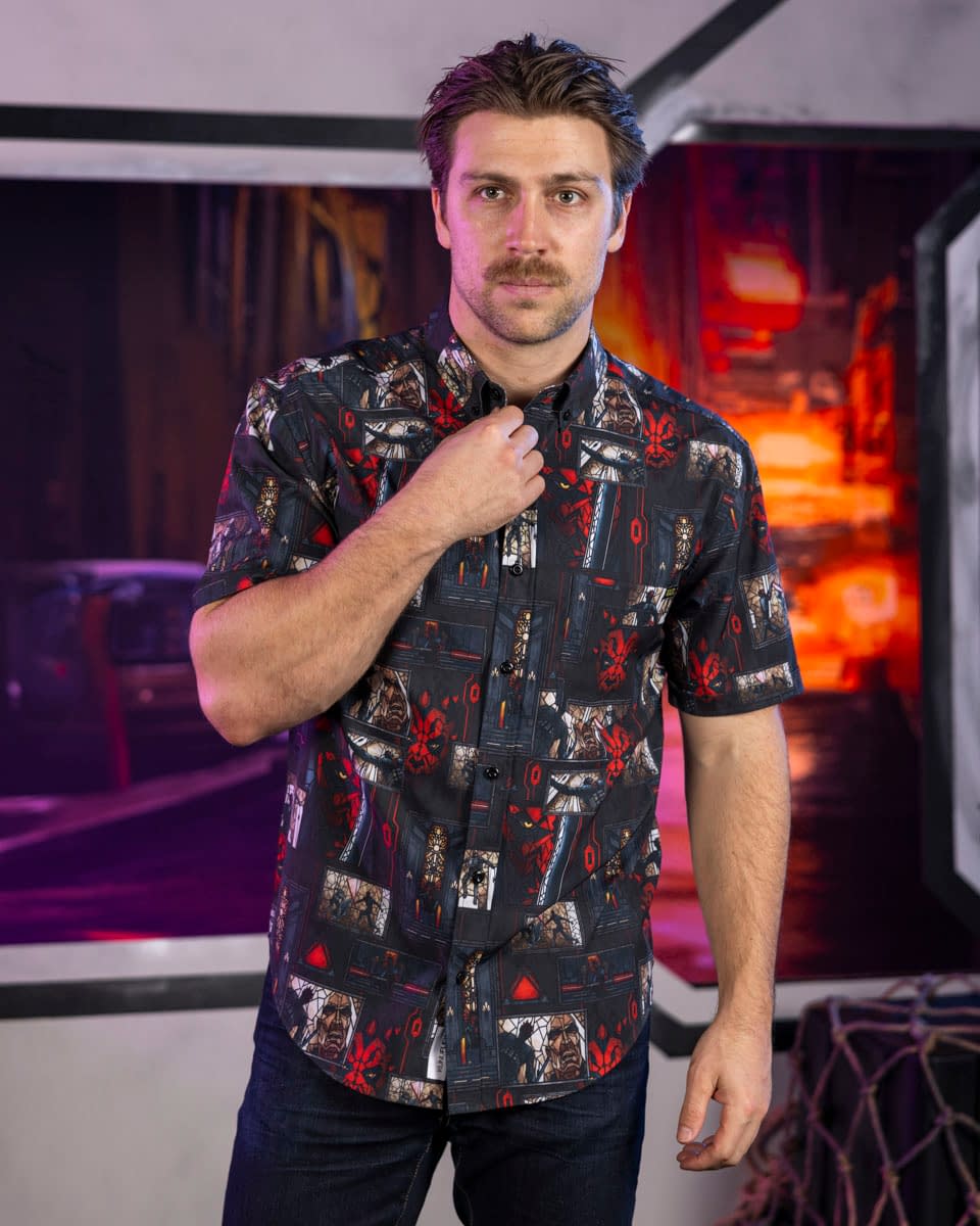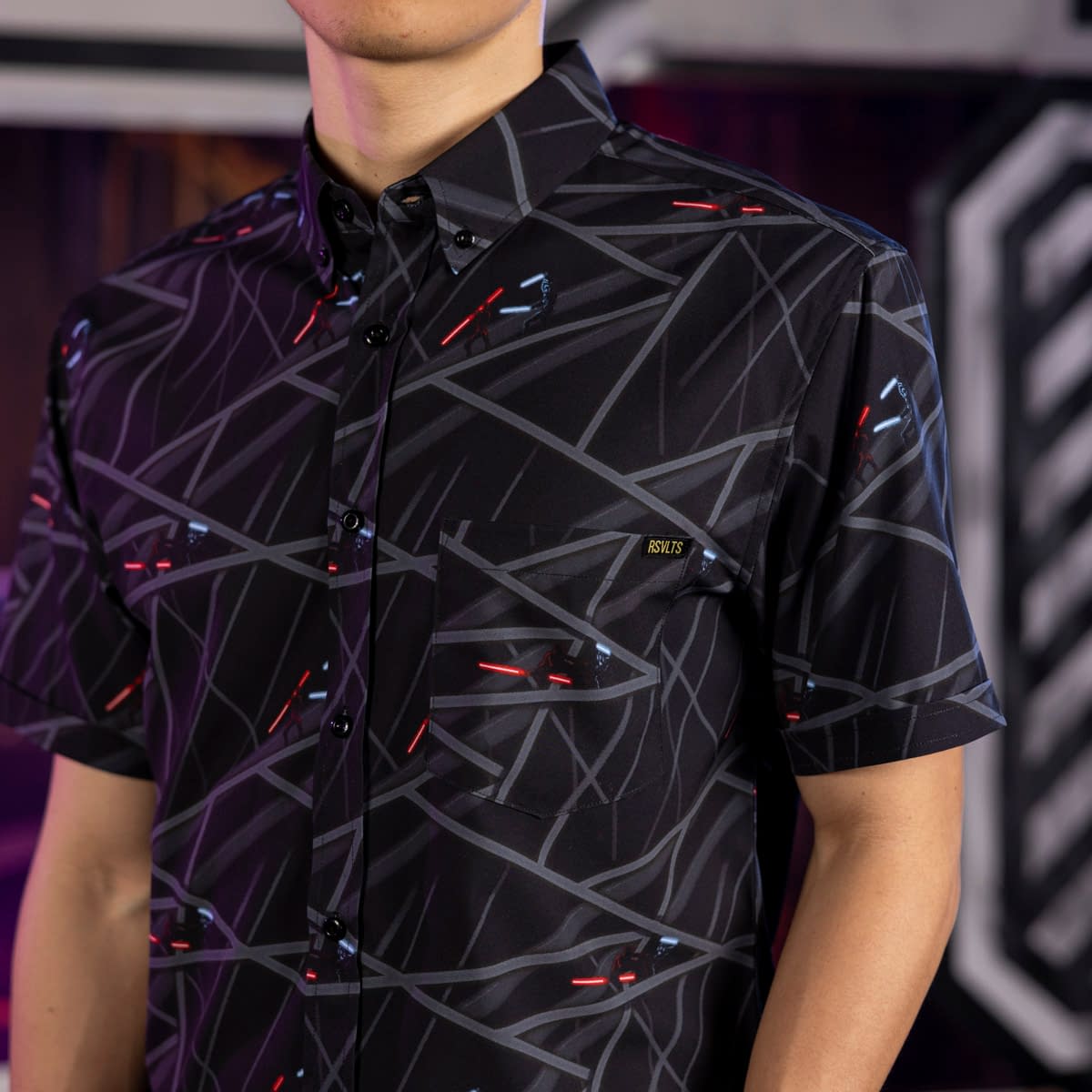 The Darth Maul fun continues with not one but three different Button-Ups. The Dark Side rises with "Renegade Blades," a classic (unisex) design inspired by Maul's iconic double-bladed lightsaber seen over the years. For fans who appreciate the larger galactic story, "The Fall of Mandalore" and "Only the Strongest Shall Rule" surely deliver just that. Both designs capture highlights from Maul's dramatic role in Mandalore during the era of Star Wars: The Clone Wars. RSVLTS has also released a companion pair of Hybrid Shorts for the "Only the Strongest Shall Rule" design, which will make you look like a powerful statement and a strong ally of the Dark Side.