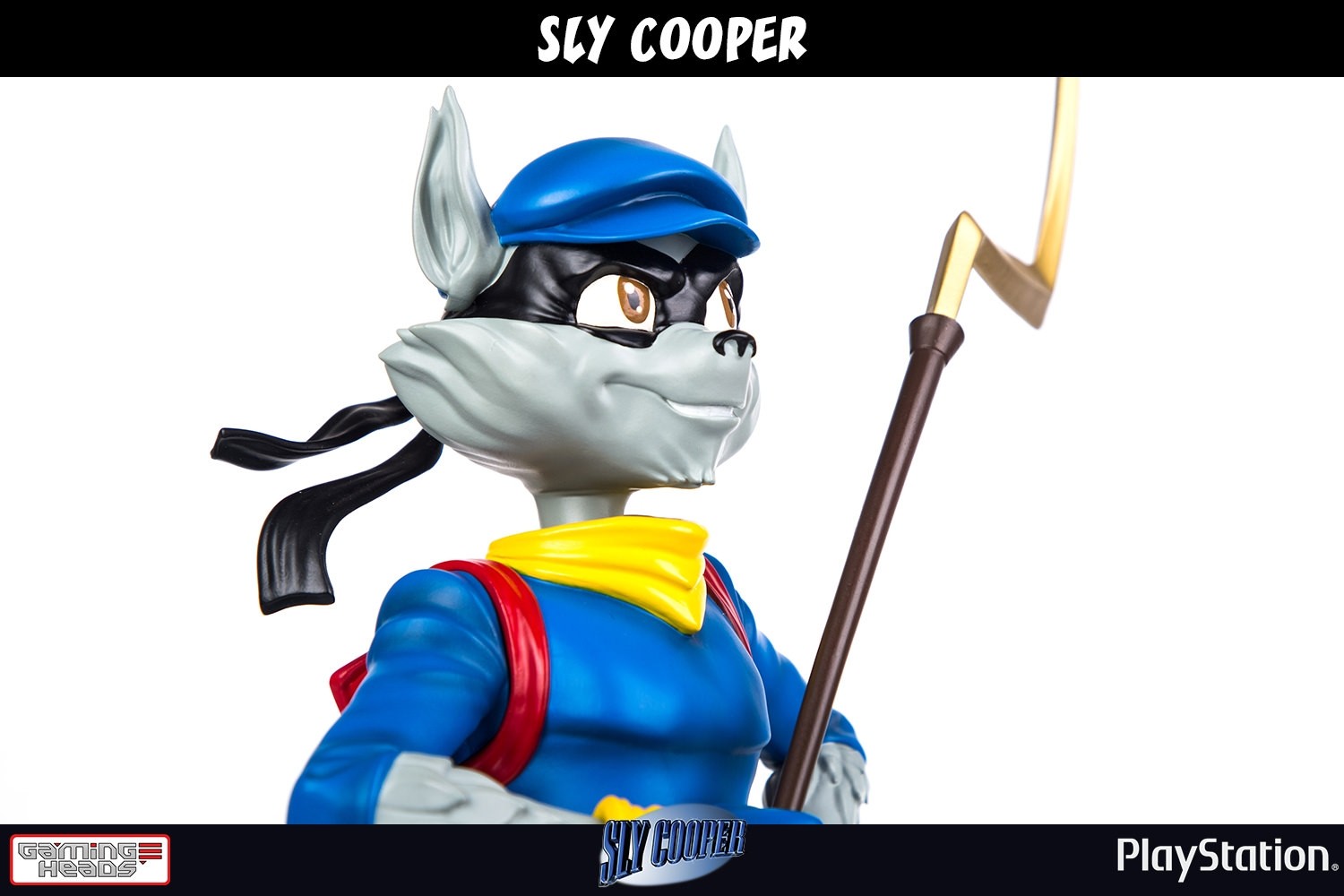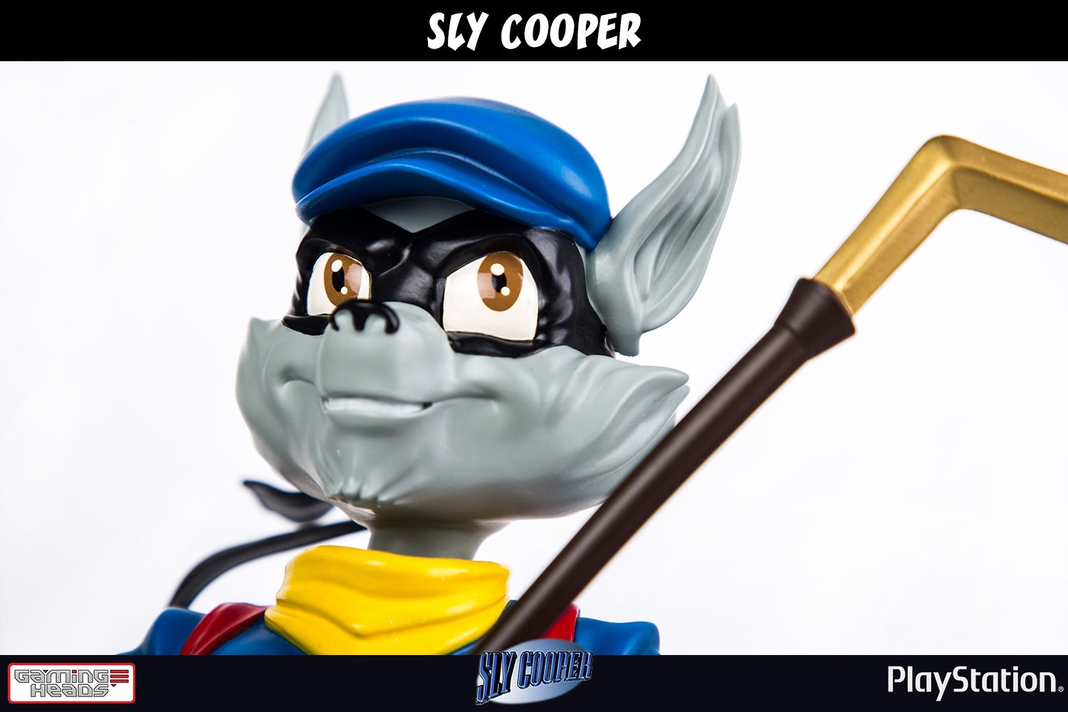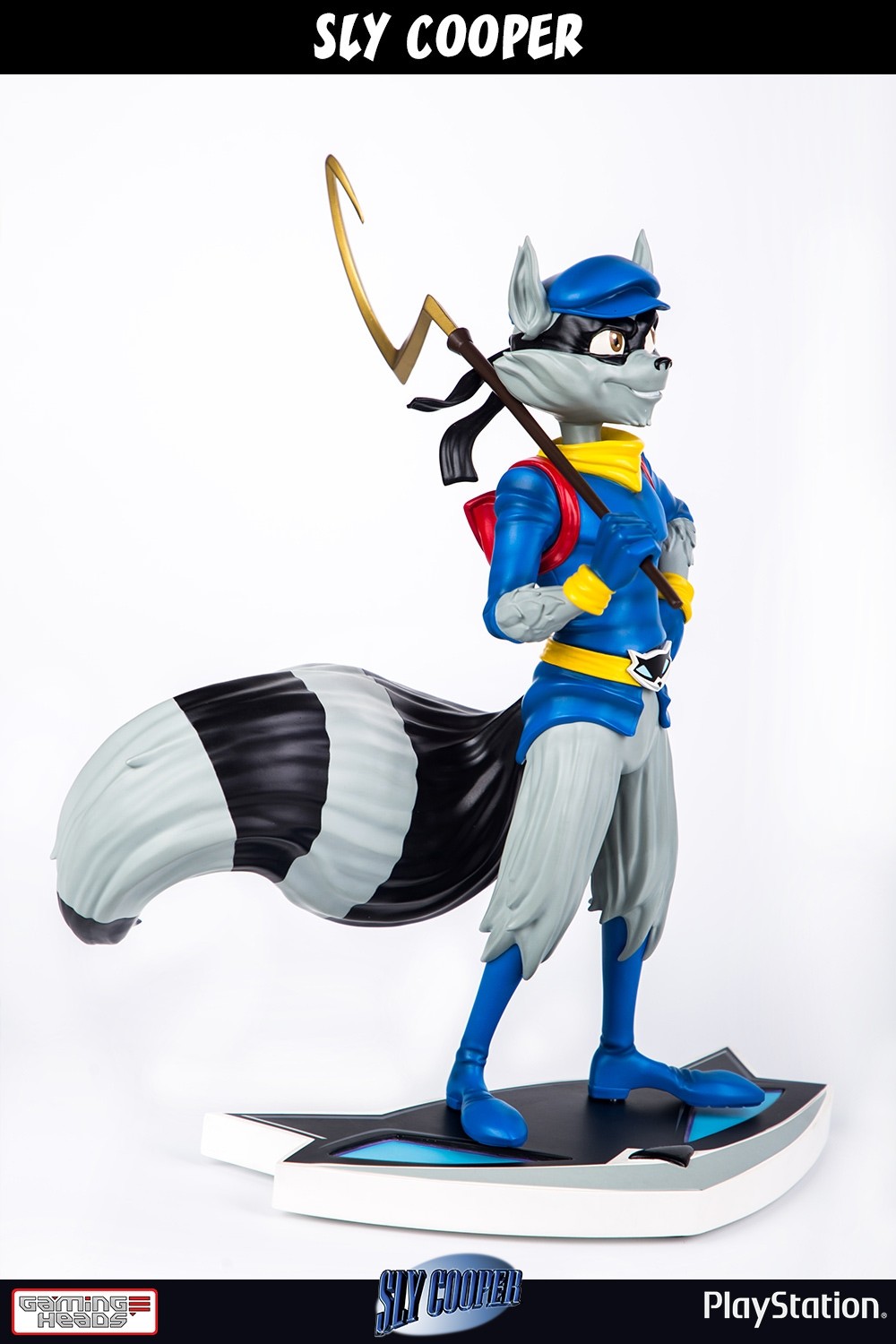 "Gaming Heads is proud to present the Sly Cooper Classic Edition Statue. Sly is a raccoon who is descended from a long line of master thieves and uses his skills, with the help of his long-time friends, to pull off heists from legit criminals. Standing approximately 13 1/2-inches tall, this beautifully designed 1:6 scale piece is carefully cast in polystone resin and hand-painted by artisans to depict Sly Cooper as found in Sly Cooper and the Thievius Raccoonus. The Sly Cooper statue can be posed with either his cane in front of him or over his shoulder. Each statue includes full-colour packaging, an individually hand-numbered base, and an authenticity card. LIMITED TO 750 pieces worldwide."