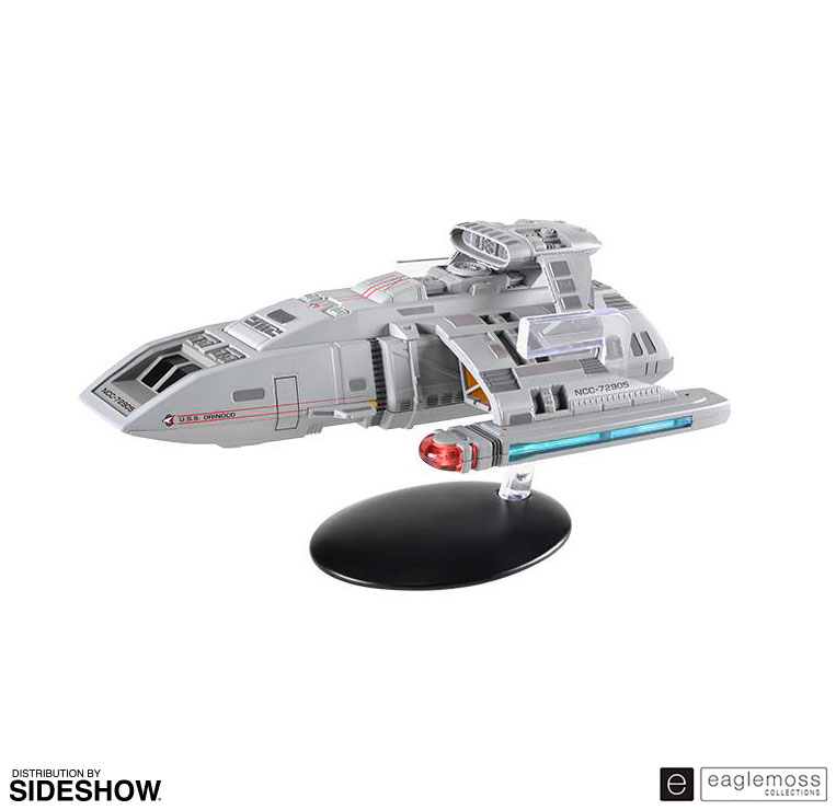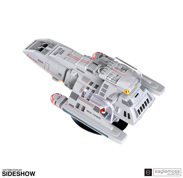 The Runabout starship one of Starfleet's versatile Danube-Class vessels that entered service in the late 24th century. The die-cast model ship of the Runabout starship was used for different types of purposes, equipped with restricted weapons and drive systems, as seen in Deep Space Nine. This fantastic ship was designed by concept designer Joseph Hodges and took him nine weeks to complete. The XL Edition of the Runabout starship makes a fitting piece for any Star Trek fan's collection. This XL Edition of the Runabout has been carefully recreated in die-cast, high-quality ABS materials with a length measuring approximately 8.5 inches long and it comes with a special collector stand so that you can display it the way you want. Inside the accompanying exclusive collector's magazine, find out about the making of Star Trek and filming the Runabout.