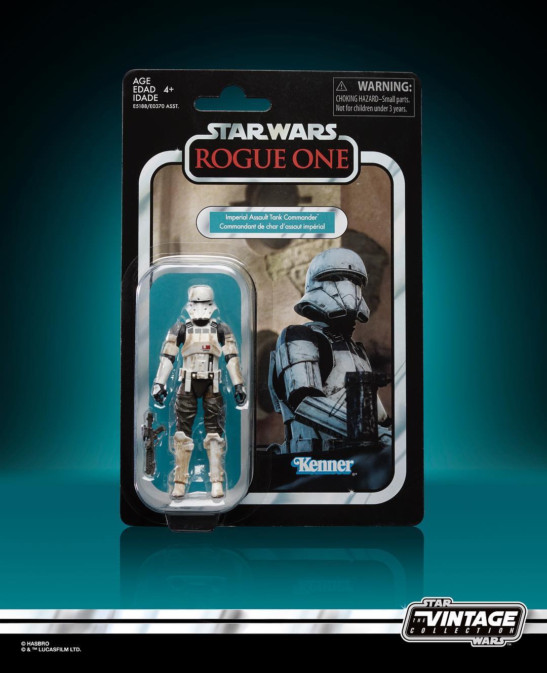 First up, new Star Wars Vintage Collection 3.75 inch figures. A new R2-D2 that features the original image from the Kenner figure of old on the cardback, the Imperial Attack Tank Trooper from Rogue One, Luke Skywalker from Crait in The Last Jedi, and a new version of the Imperial Gunner from Rogue One will hit stores this summer.