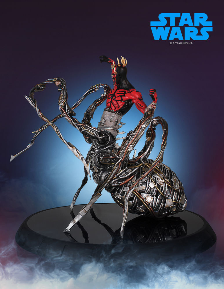 A deadly, agile Sith Lord trained by the evil Darth Sidious, Darth Maul was a formidable warrior and scheming mastermind. He wielded an intimidating double-bladed lightsaber and fought with a menacing ferocity. Though he fell in battle against Obi-Wan Kenobi, the Zabrak from Dathomir would prove to be much harder to destroy than originally believed. Darth Maul will be depicted with his Force-constructed spider legs in a 1:8 scale Collector's Gallery statue, available for $200.00.