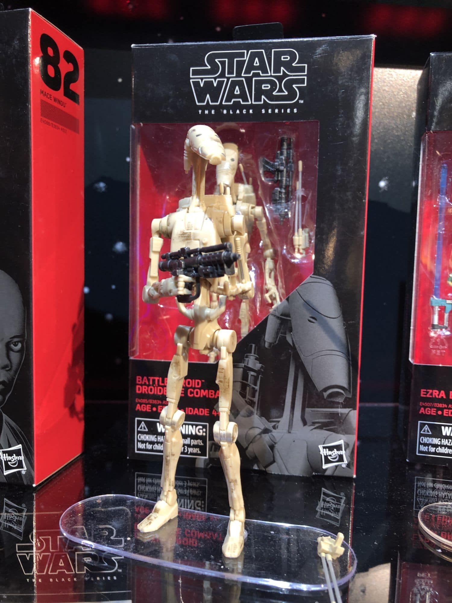 We got to see final prototypes of a bunch of new Black Series figures as well. Doctor Aphra, BeeTee, and Triple Zero were shown, along with a trash compactor Luke, Ezra, Chopper, and more. Also revealed was the Celebration exclusive for this year. Phantom Menace Obi-Wan Kenobi and Darth Maul will come exclusively on Episode 1 style cardbacks in the six inch scale. Both figures will also be released in the regular line later this year.