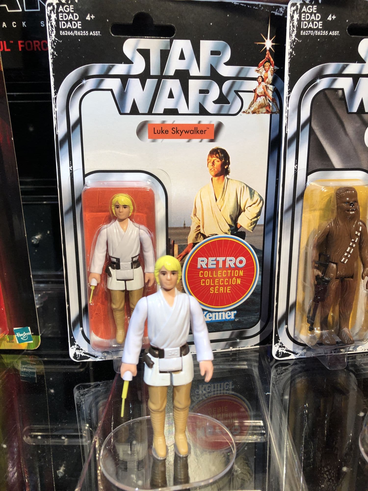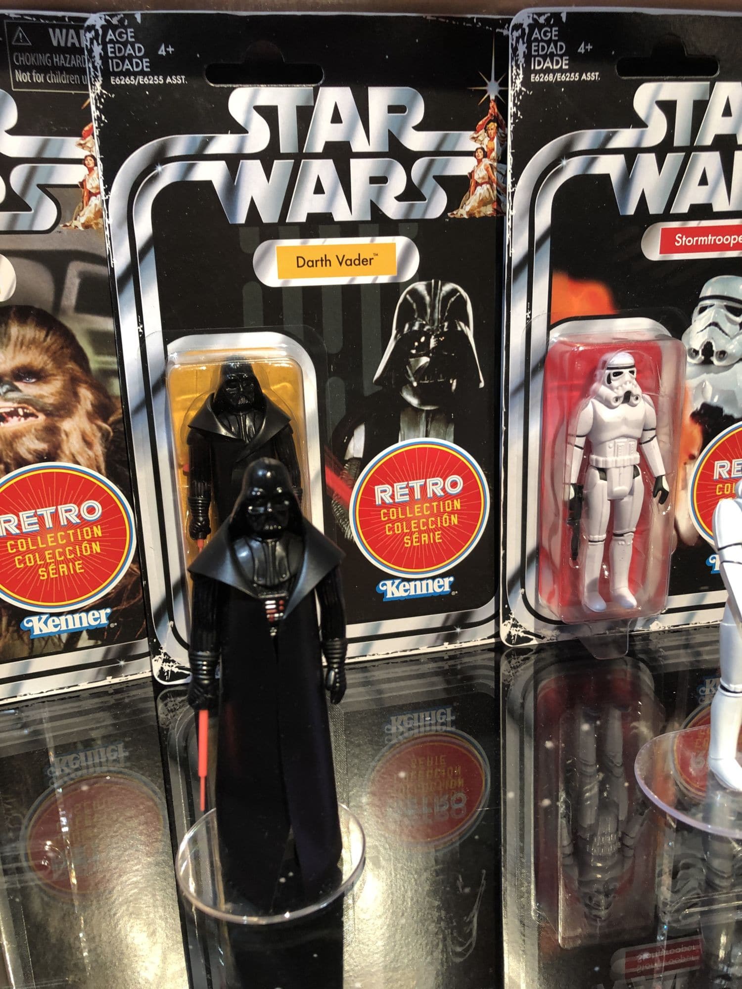 The big story is the announcement of the Retro Kenner figures. Exclusive to Target, they are exact replicas of old school Kenner Star Wars figures, right down to their accessories. Han Solo, Chewbacca, Darth vader, Princess Leia, Luke Skywalker, and a Stormtrooper will all be available. I am not sure how I feel about this as a vintage collector myself. With so much repro already out there, I guarantee you that these weapons are passed off as the real thing as soon as they hit the shelf. That bugs me. They look great, and the cardbacks are going to fun fun on the pegs. But I am not sure if I like these.