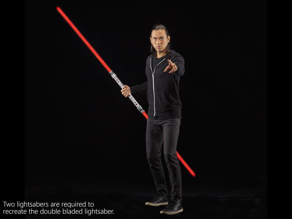 Next, we have Darth Maul's Force FX lightsaber. The thing that makes this lightsaber so amazing is it can connect to other Darth Maul Force FX lightsabers giving you the ability to make iconic a double bladed saber. Darth Maul changed the Star Wars mythos and the lightsaber game with the introduction of his double blade. Each blade comes in at 43 1/2 inches and features silver and sleek design from the film. You can't buy a double bladed saber so you would have to buy two of the single blades and use the connector to combine them. There are a lot of discounts going on so that wouldn't be too difficult if you wanted to show your Sith side. You can find the Star Wars: The Black Series Darth Maul Star Wars: The Phantom Menace Force FX lightsaber here.