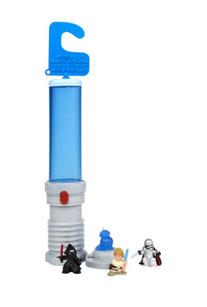 Peel the wrapper off of the STAR WARS MICRO FORCE WOW! Series 1 lightsaber blade to reveal the MICRO FORCE figures and sticker sheet contained within. STAR WARS MICRO FORCE figures are expressive, small-scale figures from the STAR WARS galaxy that let kids and collectors recreate their favorite STAR WARS scene and adventures in a micro galaxy! Decorate the hilt of the Lightsaber with the stickers! Blast into intergalactic action with squishable small-scale figures from MICRO FORCE! Includes 4 figures and 1 sticker sheet. Each sold separately. Available exclusively at Walmart Fall 2018 and at all major retailers 1/1/19.
