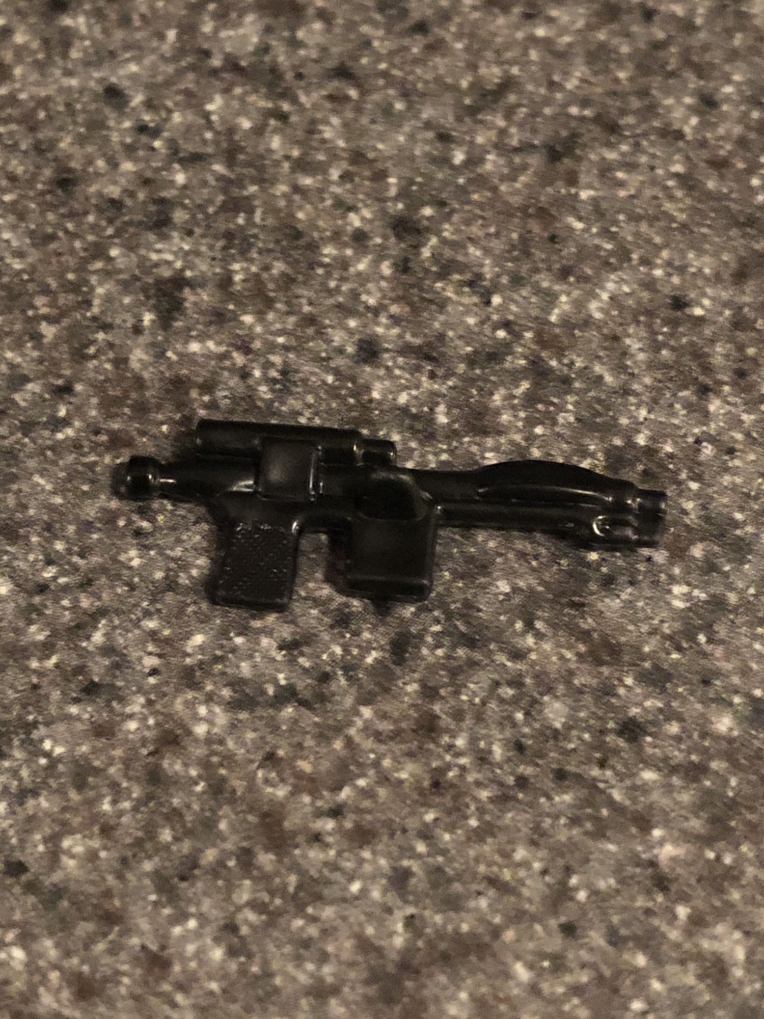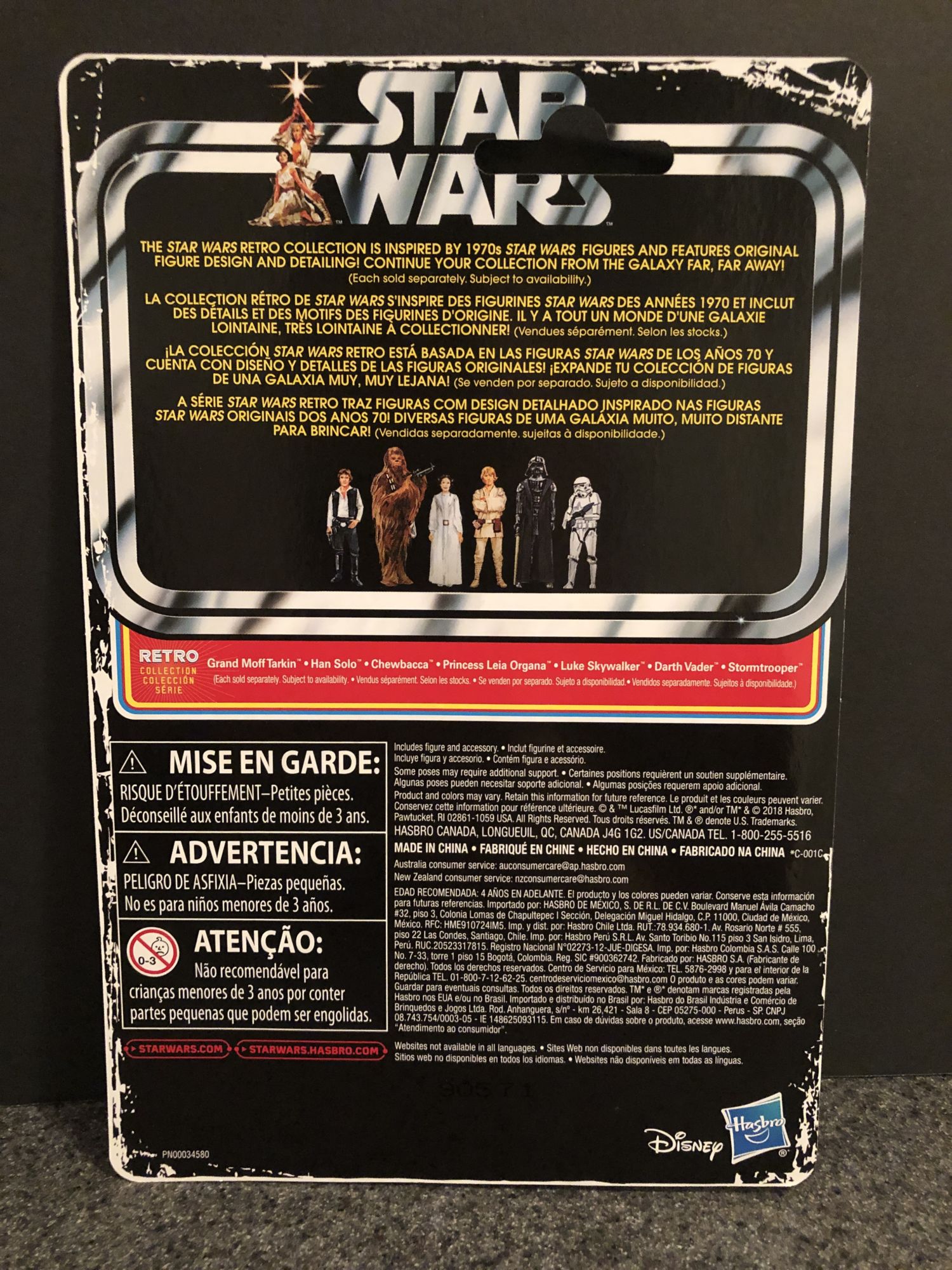 I wanna start with his blaster. It is modeled after the Imperial Blaster from the Kenner days. One of the biggest issues with this line, and with good reason, is that vintage collectors will have to worry whether their vintage figures they are buying have these paired with vintage figures or not. That was the number one concern when these were announced. Repro weapons are already a huge issue, and Hasbro adding to it was less than ideal. I am happy to say that it will be easy to tell them apart. Not only is it made of a more modern plastic so that it has a different feel, but there is a small number placed on the handle. The black is also a different hue than the originals. They seem to have gone out of their way to alleviate some of those concerns. Whew!