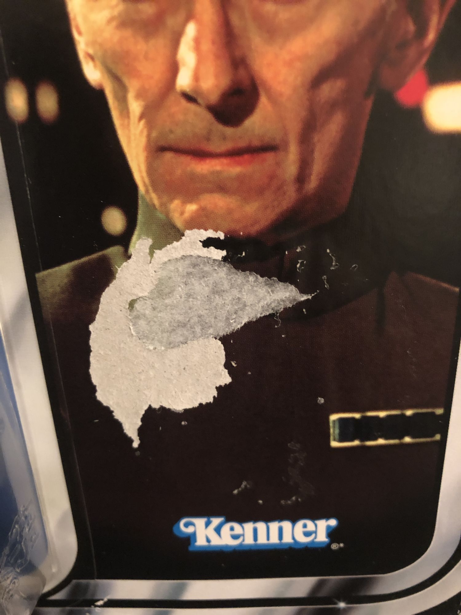 There is only one reason anyone is buying this anyway, and that is the Tarkin figure. I can't really describe what it is like to hold this in my hands. The cardback is deigned after the classic Kenner Star Wars line, with subtle differences. The hole punch is in a different location, things like that. Also, it comes with a huge sticker on the front. As you can see, it is not easy at all to get off. Its placement is ok, you can still see Tarkin's face, but man I wish that wasn't on there. So, MOC collectors beware. This sucker is very hard to get off, use extreme caution.