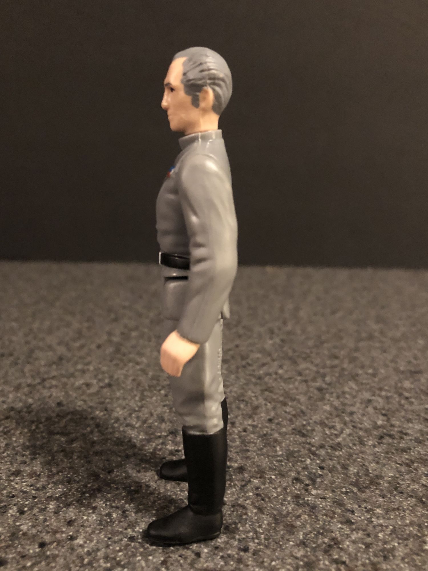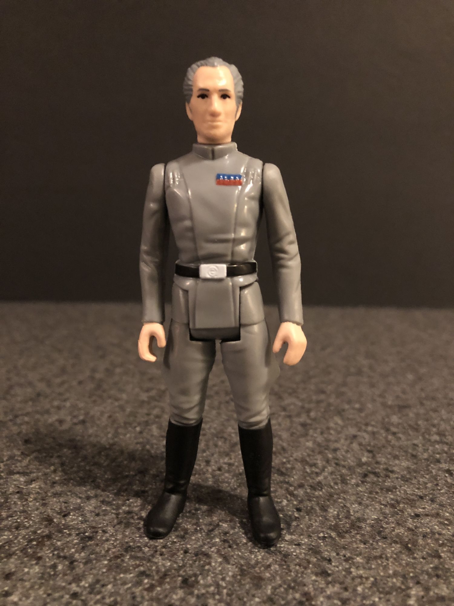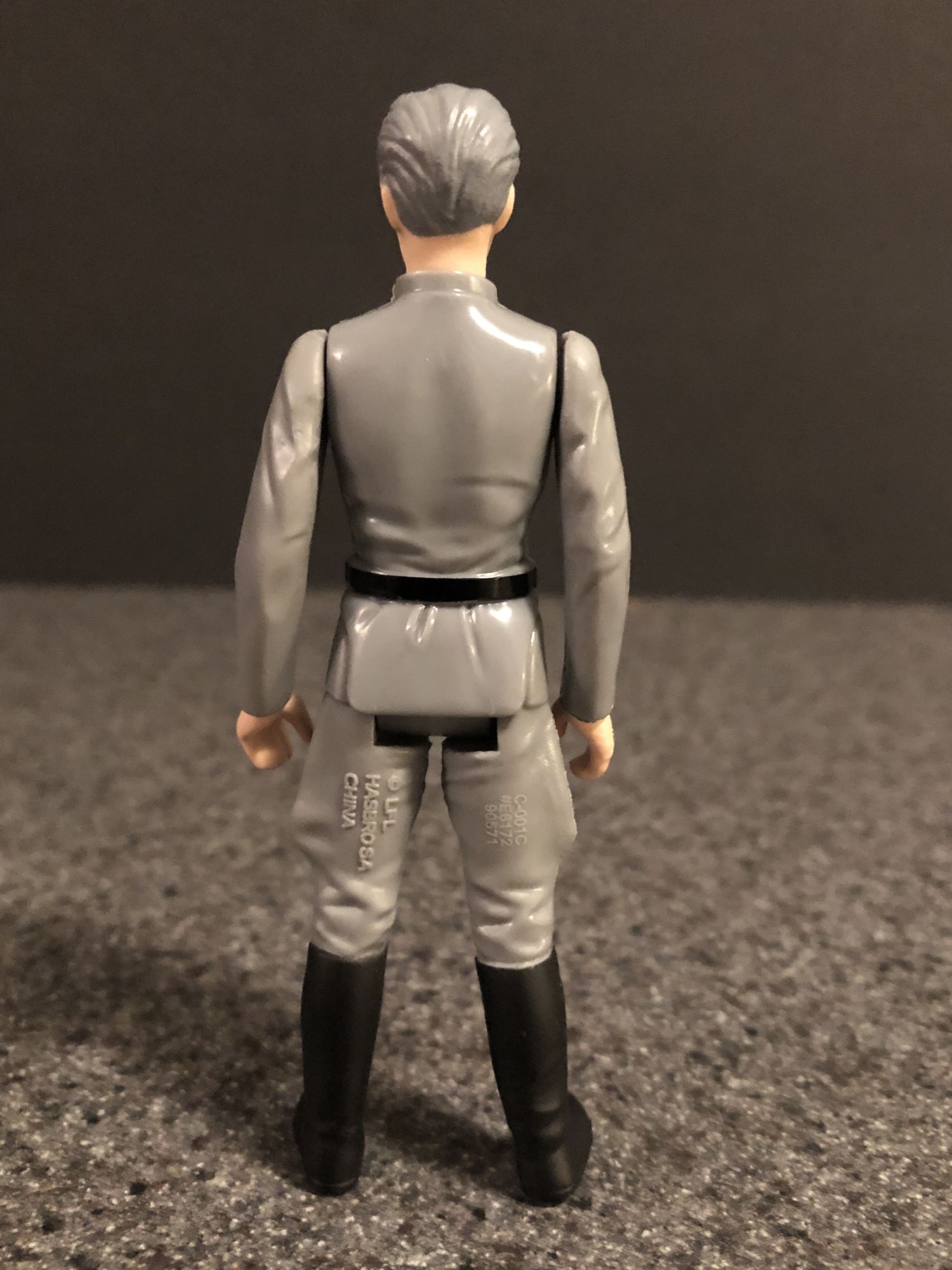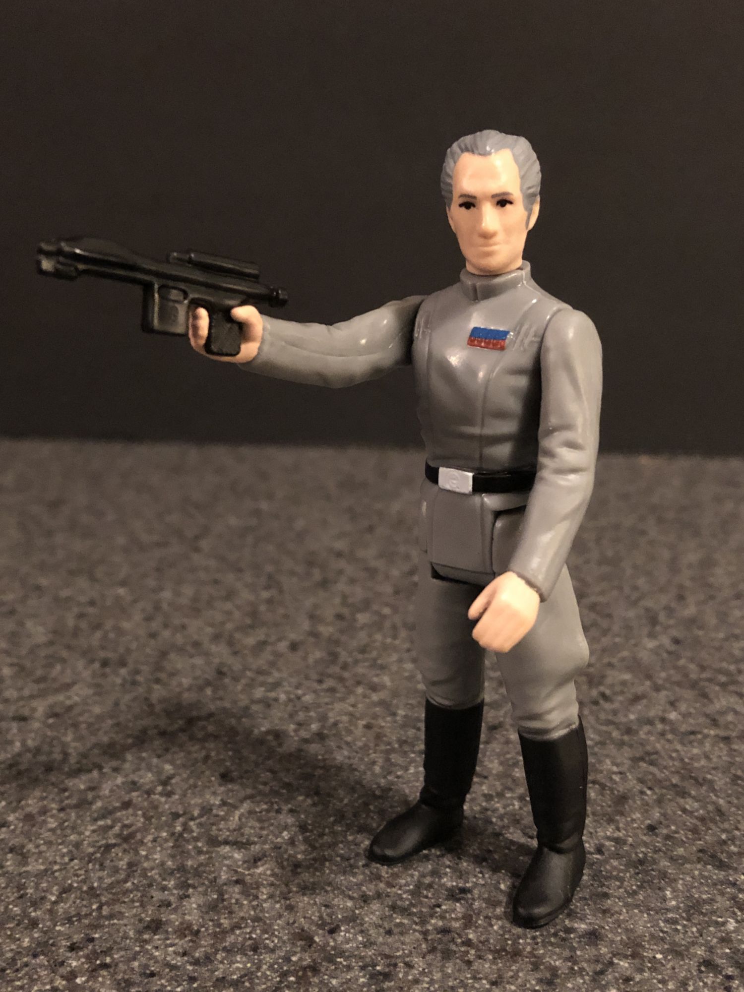 Finally, Tarkin himself. Star Wars fans- they nailed it. Crushed it even. This figure fits right in next to his vintage counterparts. He features the standard Kenner five points of articulation, and like his older brethren, cannot hold his blaster at all. Well, thats not true. He can, it just takes some work. That put a smile on my face. After talking with the Star Wars hasbro design team about this figure, holding it in my hands I can tell what a labor of love this one was to produce. I cannot get over what it is like to walk into a store and buy a NEW, vintage Star Wars figure. I have zero complaints about this. It is perfect.