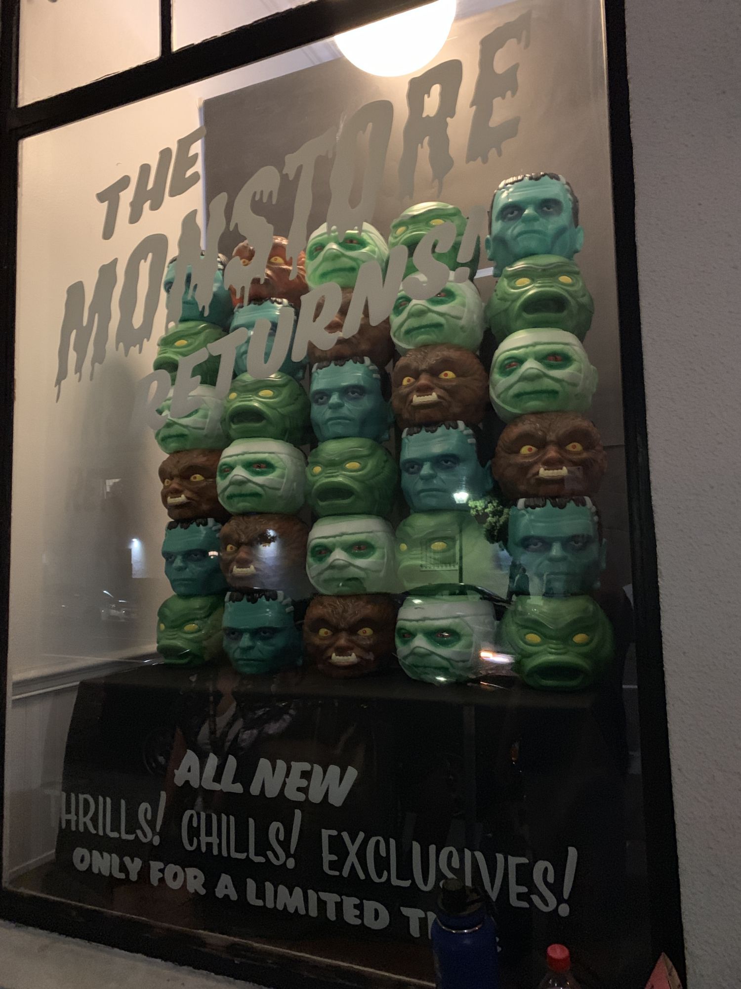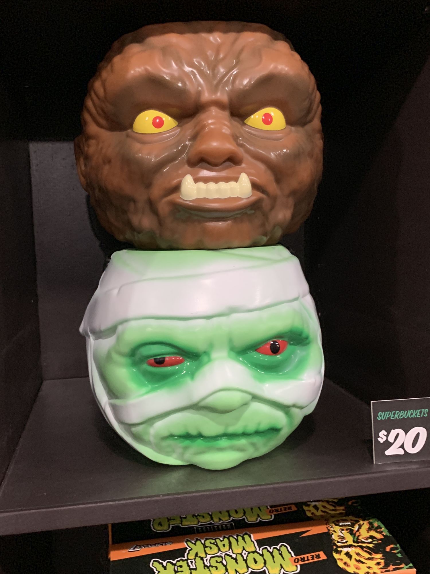 The entire shop is decked out in old school looking store signs and Universal Monsters decor, and it was like a warm hug walking into the store. For how busy it was, the were running like a well-oiled machine in there too, restocking constantly and moving people rather quickly through the checkout. There was no shortage of merchandise to shop either, many styles of shirts, puffy stickers, Super Bucket pails, masks, and more were available, diving deeper into the Universal Monsters catalog this year.