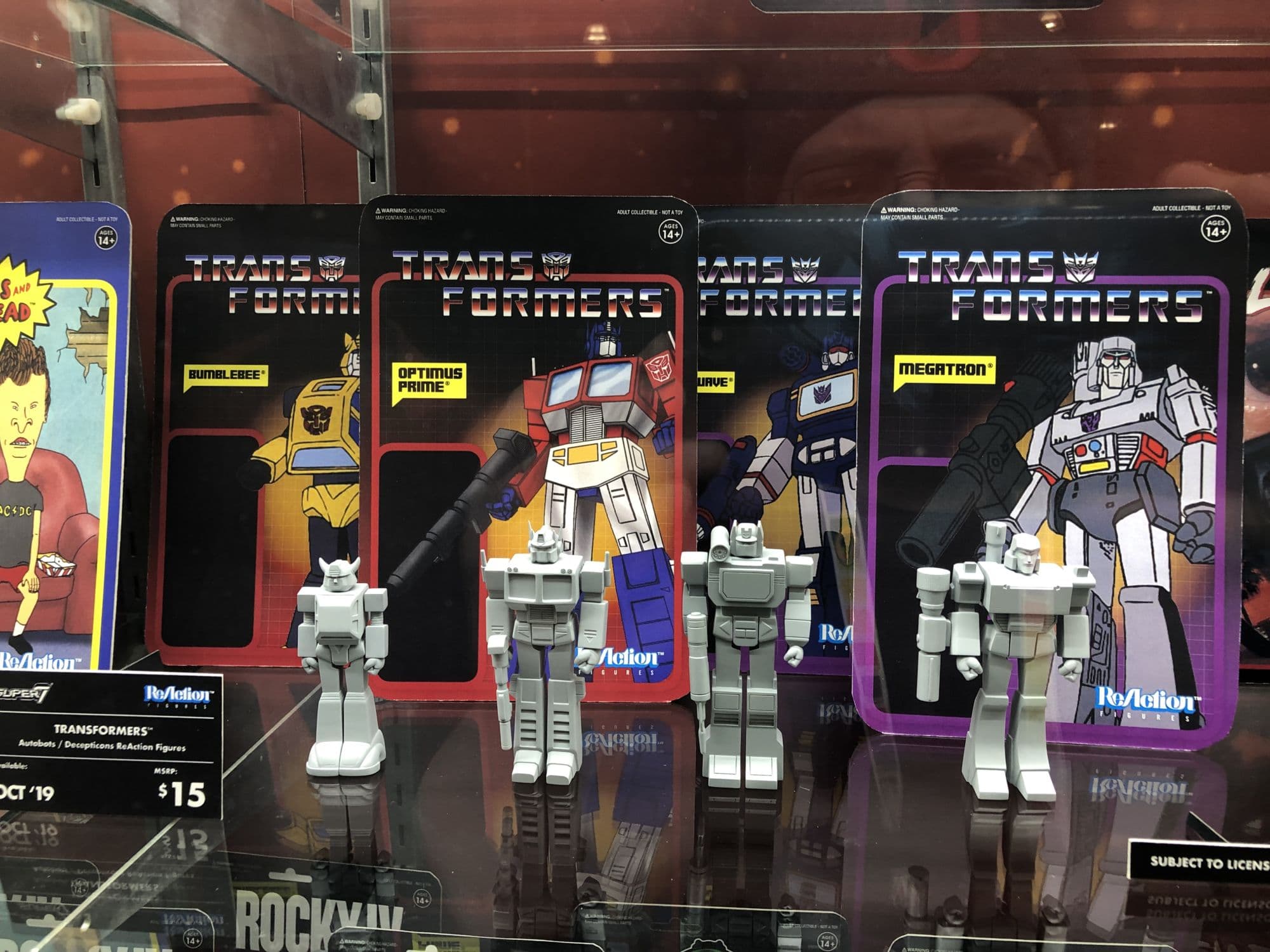 Maybe most exciting this year is the ReAction figures they also had prototypes for at Toy Fair. Bumblebee, Optimus, Soundwave, and Megatron where in there, on awesome vintage-style cardbacks. I love ReAction figures more than most people, and they always knock them out of the park. These will be no different.