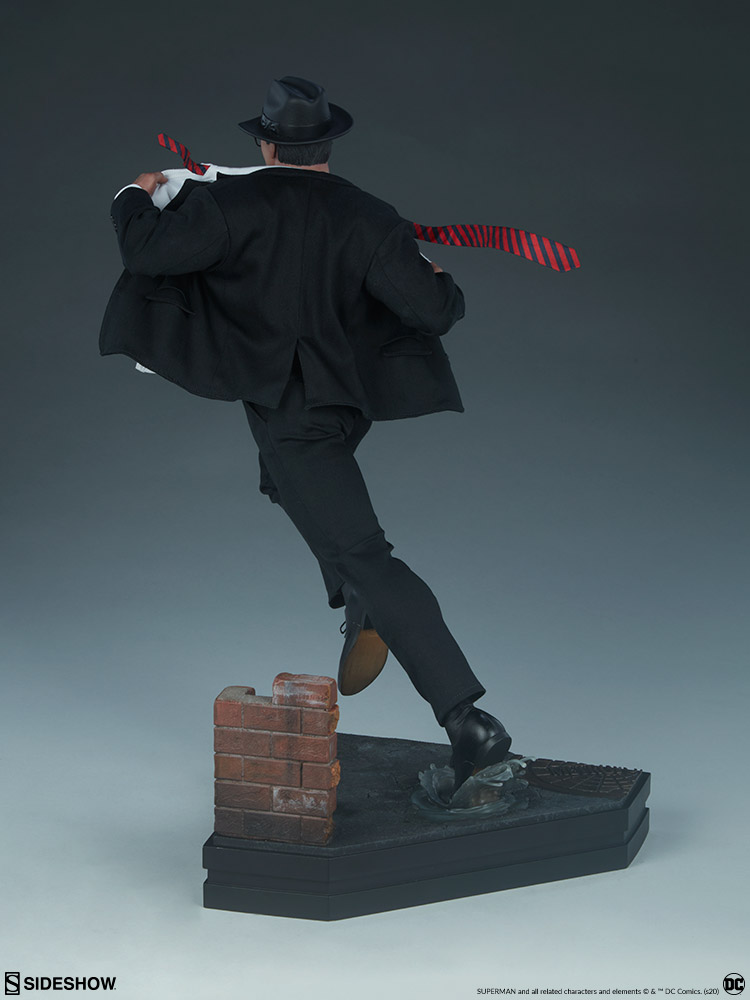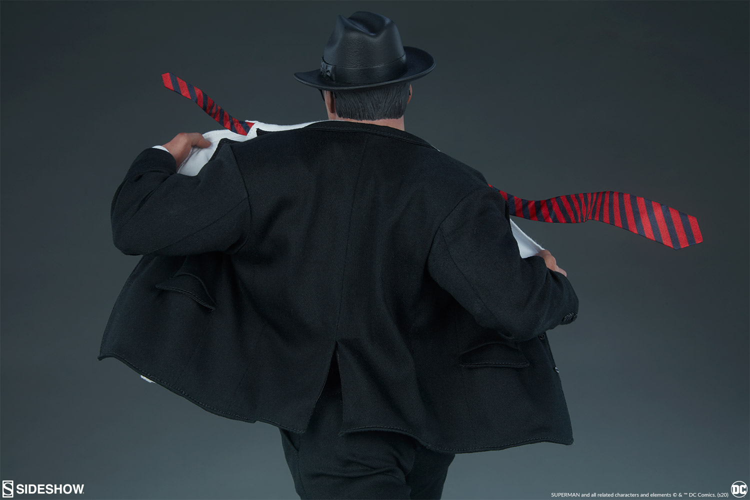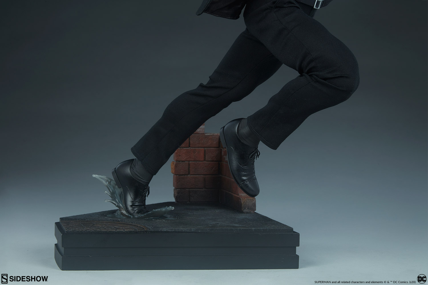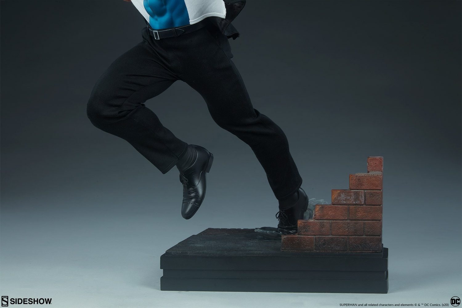 The Superman: Call to Action Premium Format™ Figure measures 19.5" tall as Clark Kent sheds his civilian disguise to become Superman, running through a Metropolis alley as he answers his city's cry for help. This inspiring and dynamic DC Comics collectible captures both sides of the Kryptonian's truly heroic self, as both a mild-mannered reporter and the Man of Steel.
