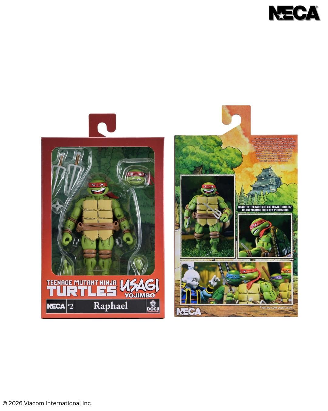 Coming in at 7" tall, the Teenage Mutant Ninja Turtles x Usagi Yojimbo Raph will come in collector-friendly packaging with a window. He will have a new comic book deco, along with two swappable heads, a ninja star, a variety of extra hands, and his signature sais. NECA will also be releasing Leonardo, Donatello, and Michelangelo for this new Usagi Yojimbo collab, with each figure complementing the other. In collaborating with Dogu Publishing, fans will be able to pre-order one or all of these figures through the NECAStore. No release date or price has been unveiled, but expect them to drop in 2026.