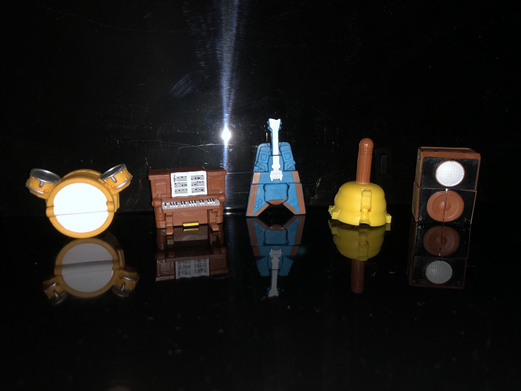 Next, we have a Music Mob which is a group of musical instruments. The rare figure from this group is a Dingledeedoo, the bell. However, one of the best figures in this group is easily Axwell. This guitar transforms into what is seemingly an Elvis look like and it is just absolutely amazing! Designs on these little Botbots transform well are colorful and cannot only please a kid but any adult collector too.