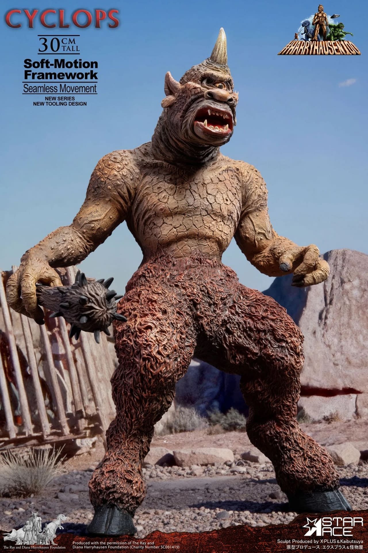 "Towering 30 cm tall, the new Star Ace Cyclops from Ray Harryhausen's The 7th Voyage of Sinbad brings one of cinema's most legendary creatures to life like never before. As part of the Soft-Motion series, this meticulously crafted figure captures the presence and personality of the original stop-motion model, translating Harryhausen's iconic design into a premium collectible for discerning fans."