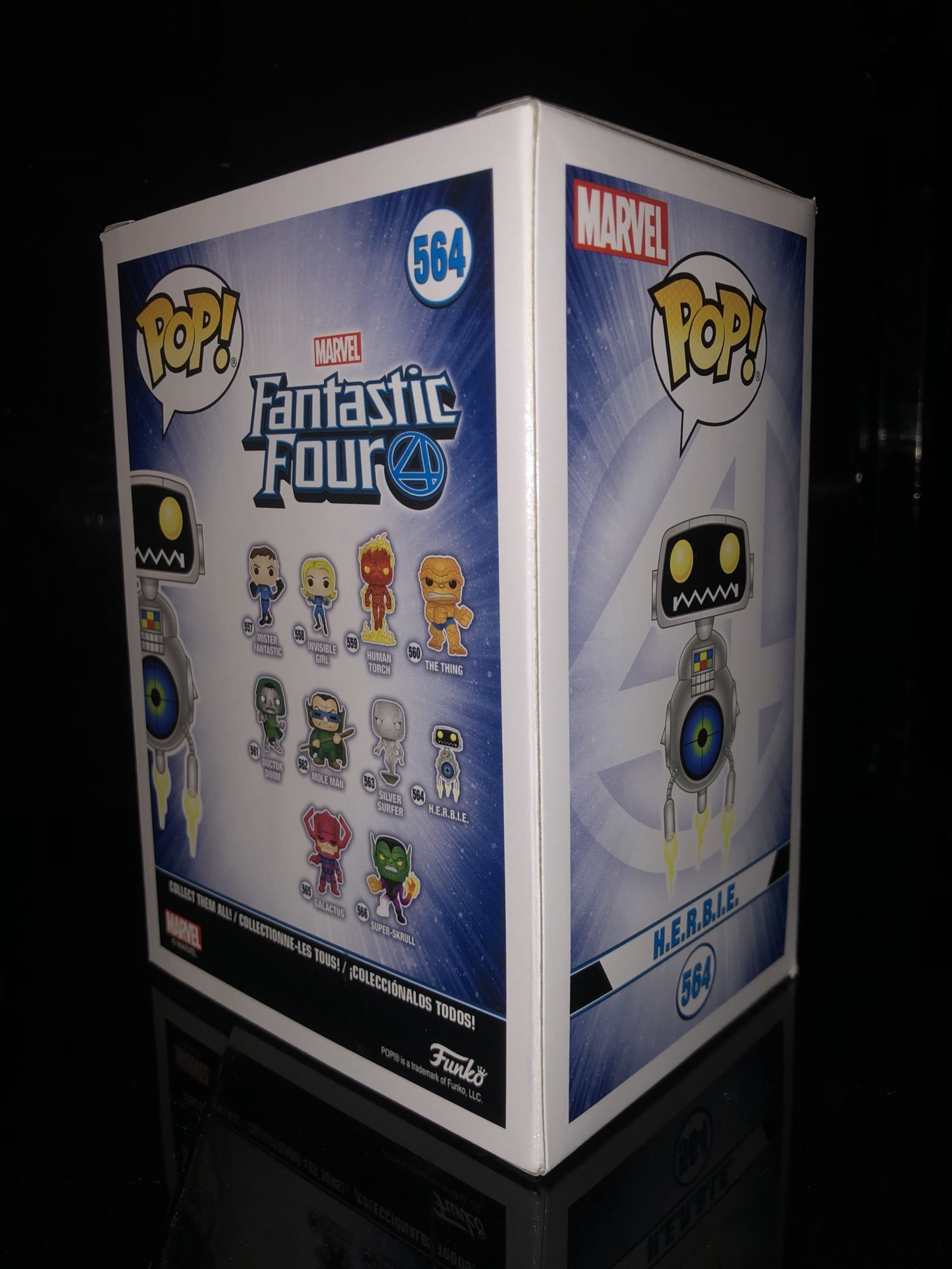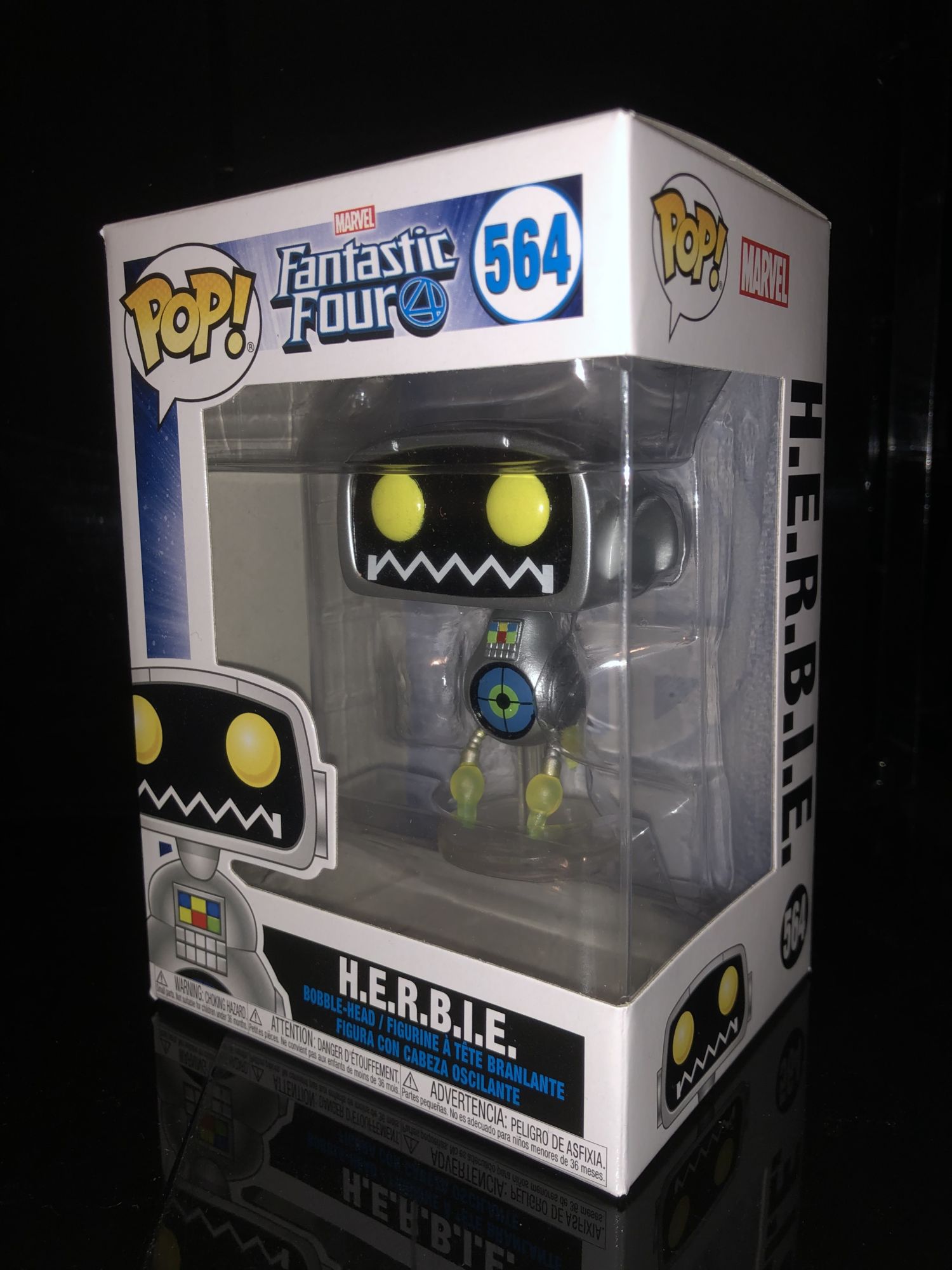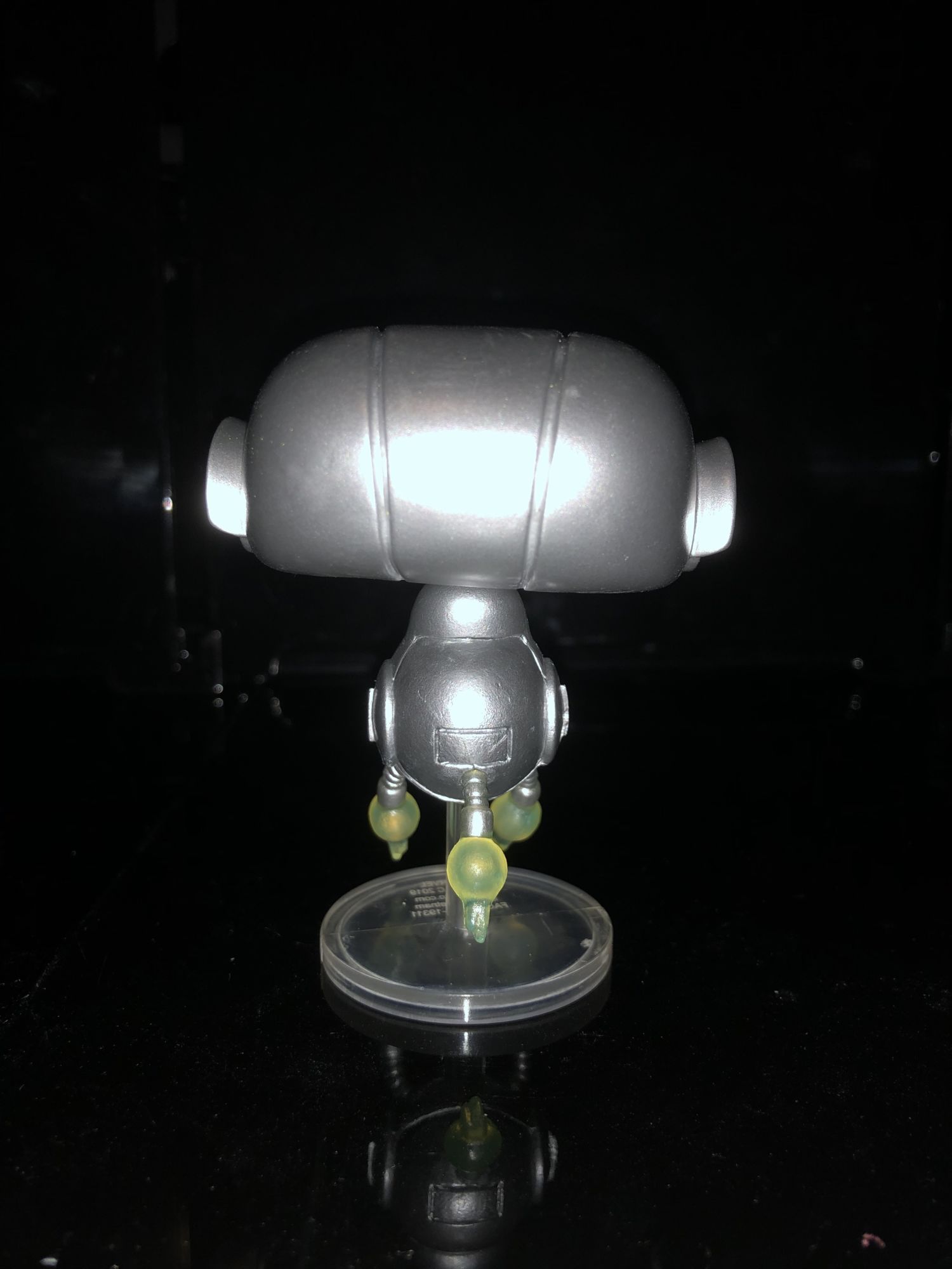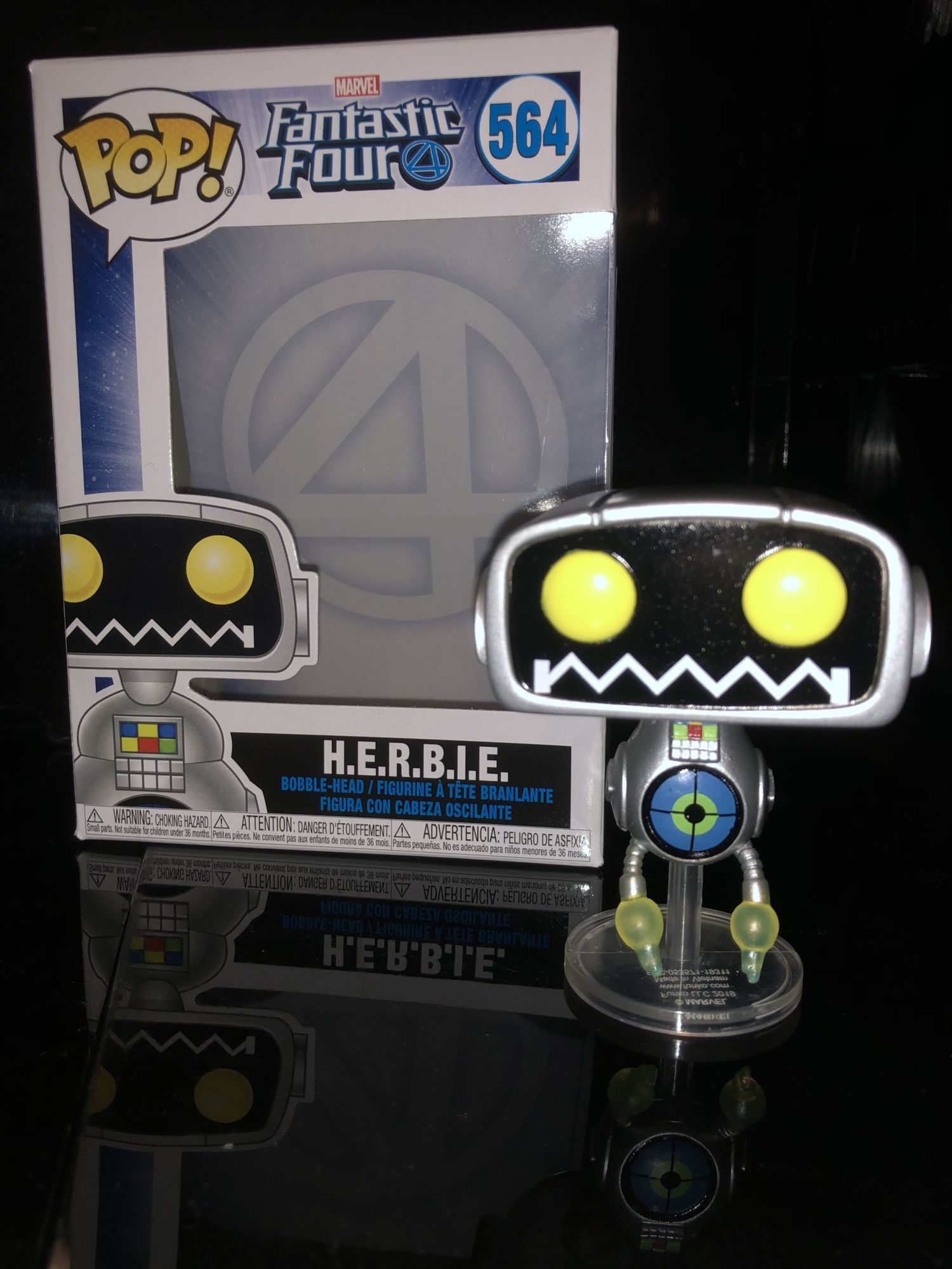 The Funko Pop itself is pretty small but packed with detail. His big head lightens up the room as his bright yellow eyes stare at you. He does have an attached display stand on him that shows him dying off the ground. His front does have electronic parts and that gives them character. This is a nice little addition for any Fantastic Four fan and comic fans will be happy that their faithful H.E.R.B.I.E made the cut.