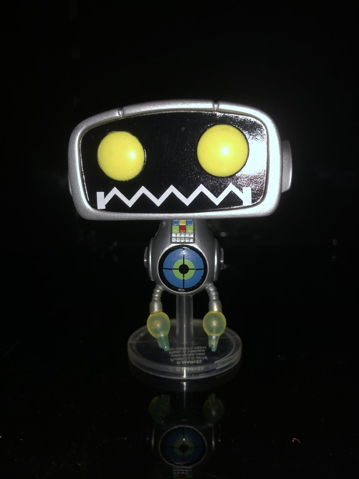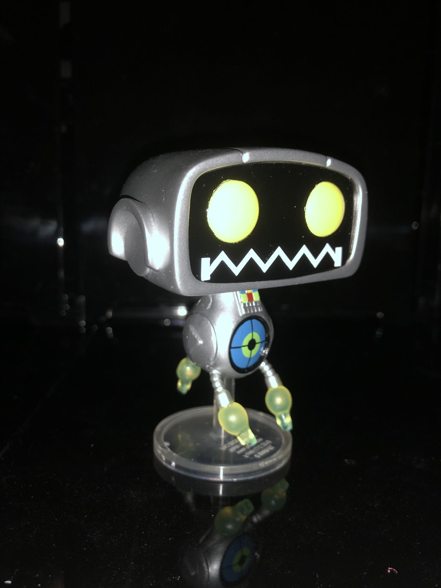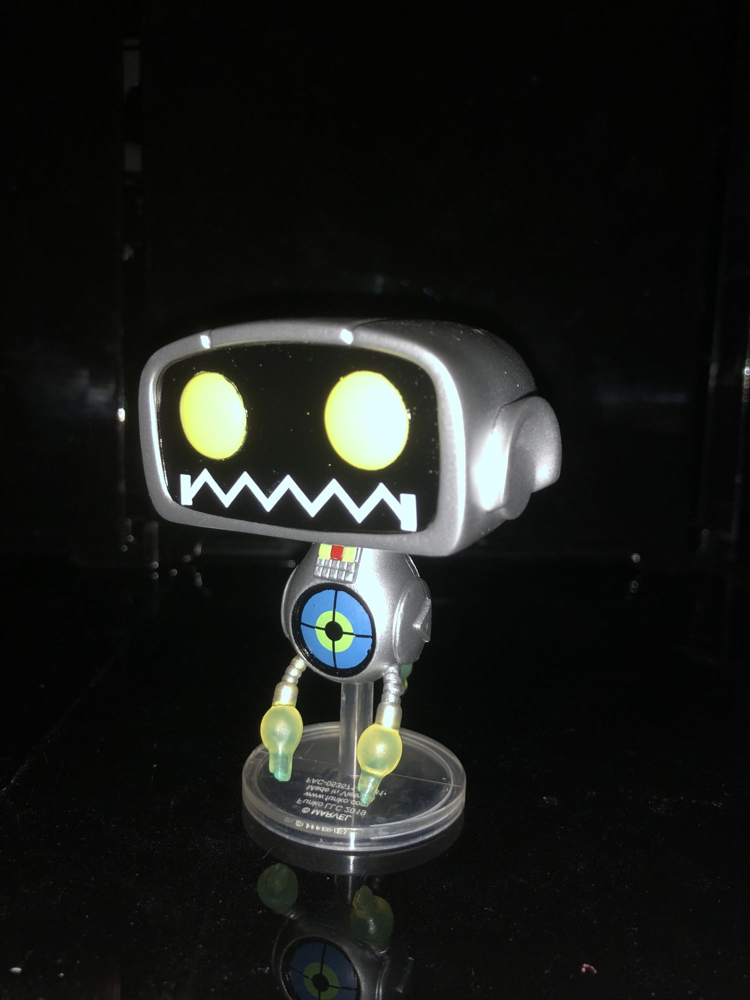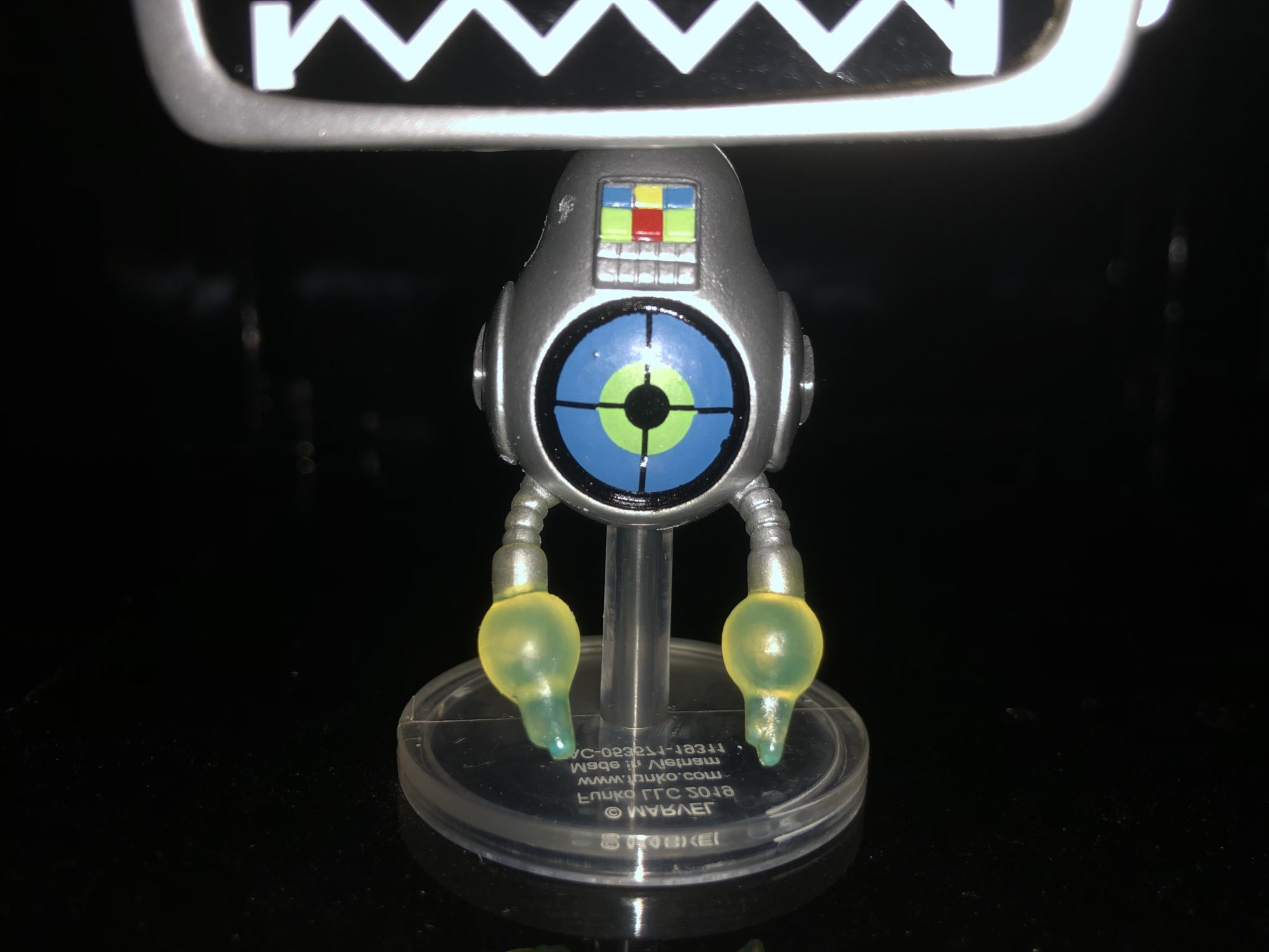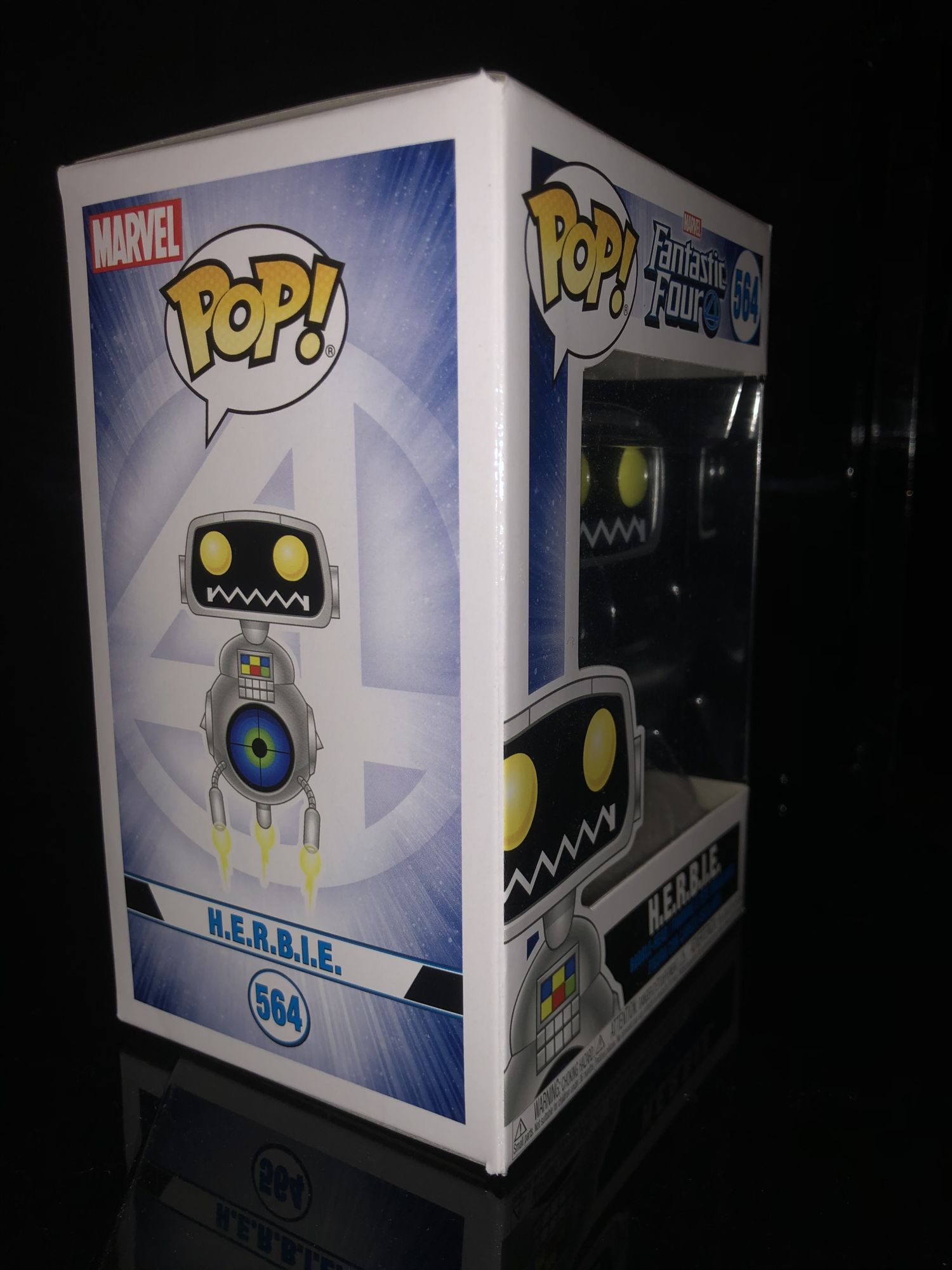 The Funko Pop itself is pretty small but packed with detail. His big head lightens up the room as his bright yellow eyes stare at you. He does have an attached display stand on him that shows him dying off the ground. His front does have electronic parts and that gives them character. This is a nice little addition for any Fantastic Four fan and comic fans will be happy that their faithful H.E.R.B.I.E made the cut.