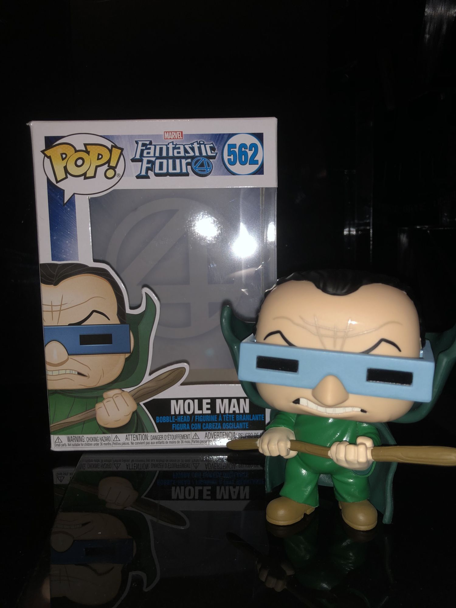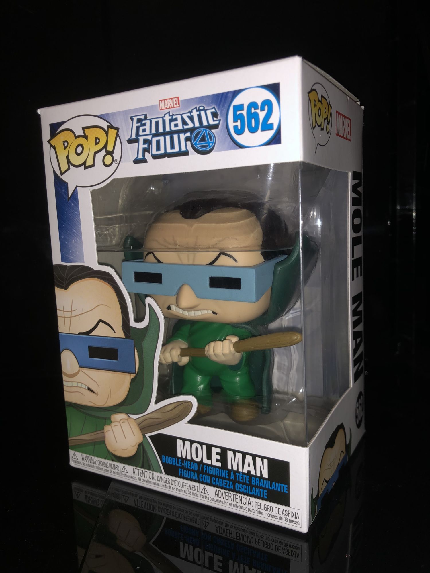 I was kind of hesitant to buy this one but when I opened him up I was glad I made the purchase. This Funko Pop is very nicely detailed and designed. They put a lot of detail on his face from his smirk to the wrinkles on his forehead. The hair is nicely done and his outfit is just right. They gave him a wooden bow staff which he is seen with him in the comics. The color of his skin and the greens of his costume easily compliment each other and it is a nice figure all around. The Mole Man Funko a must-own for any true Fantastic Four fan to add to their Marvel collection.