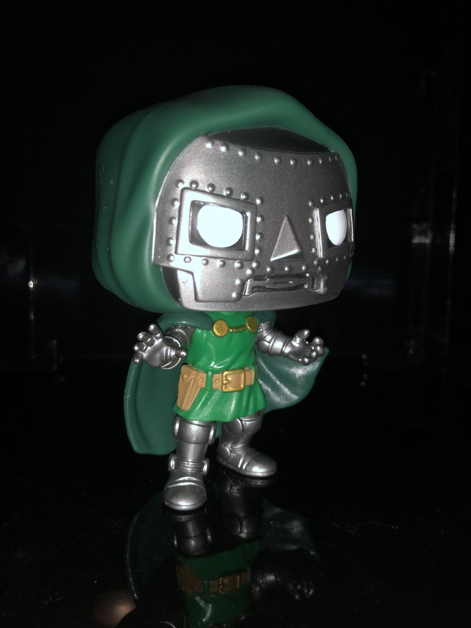 The Doctor Doom Funko Pop vinyl is very well detailed and does right by this Fantastic Four character. Doctor Doom is one of my favorite Marvel super villains and I was glad to be able to add him to my collection. His outfit is very well-designed and his mask is pretty spot on to the comics. You can definitely tell that Funko has changed up their game with so many dynamic poses that these new molds are put in. If you missed the release of the first Doctor Doom that came out this is an amazing close second. This is easily a must-have figure for anyone trying to complete the Fantastic Four set.