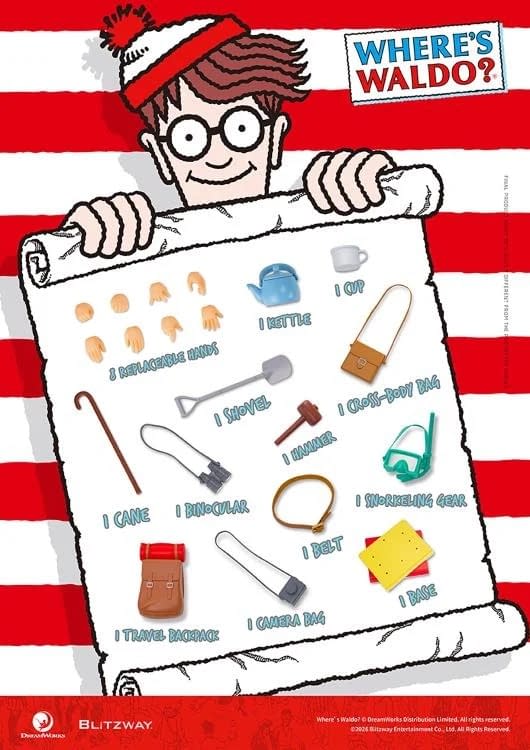 "Where's Waldo? Blitzway brings the iconic search-and-find character to life with a newly developed 1/12 scale figure, featuring Waldo's classic look and a wide range of explorer-style accessories. Since his first appearance in 1987, Waldo has been loved across generations. His red-and-white striped sweater, round glasses, and the familiar moment of finally spotting him somewhere within the pages after a long search evoke fond childhood memories for many."