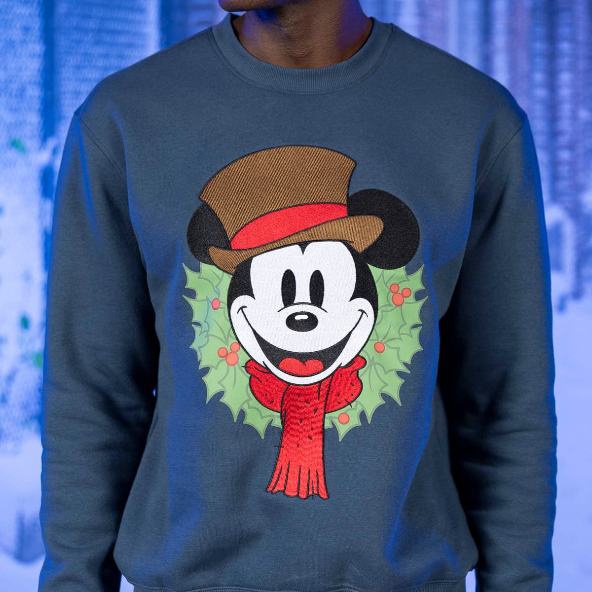 Crewneck sweatshirts ($75) featuring "Yuletide Mickey"
