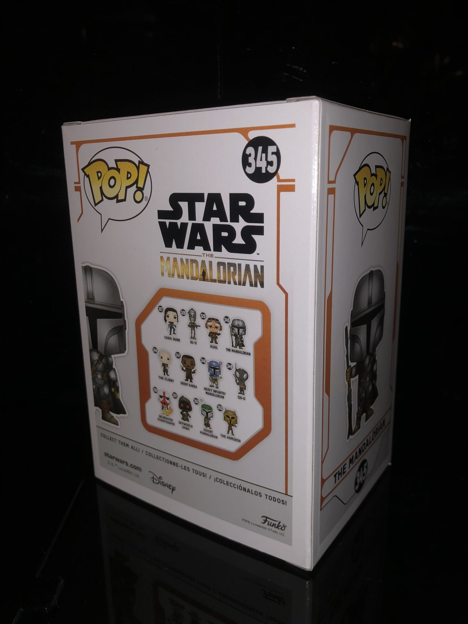 The first Funko Pop we are looking at is our main protagonist The Mandalorian. His box is no different from the rest of the series and all the figures show a Mandalorian symbol as the backdrop. There are no hidden words or phrases on the box though. I was hoping we would at least see a "This is the way," somewhere on it.
