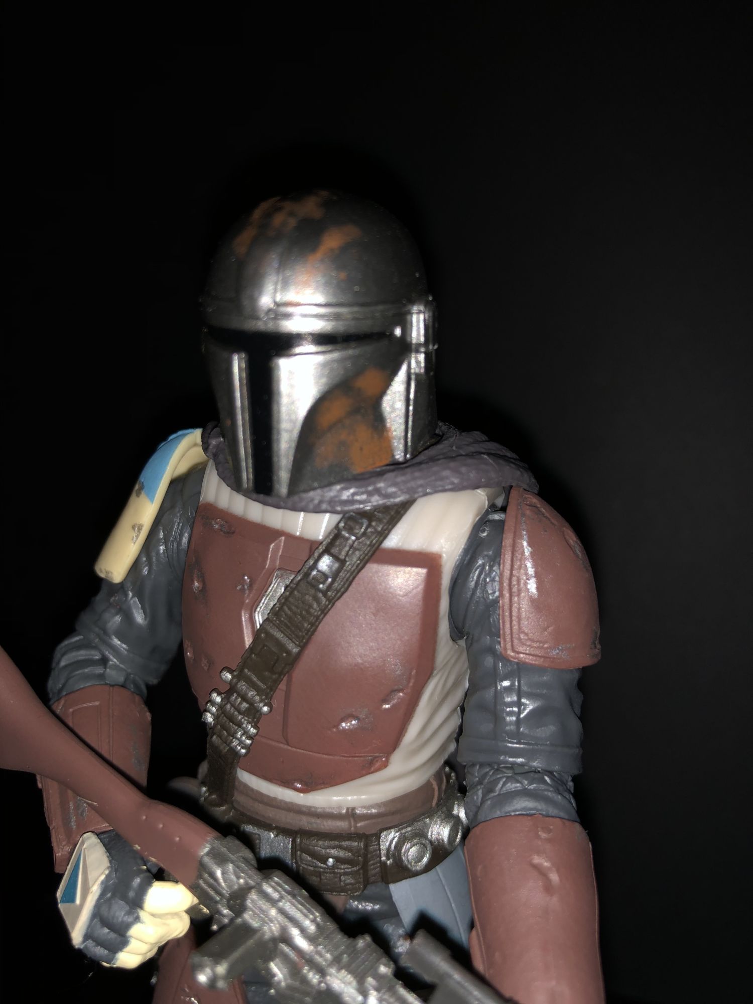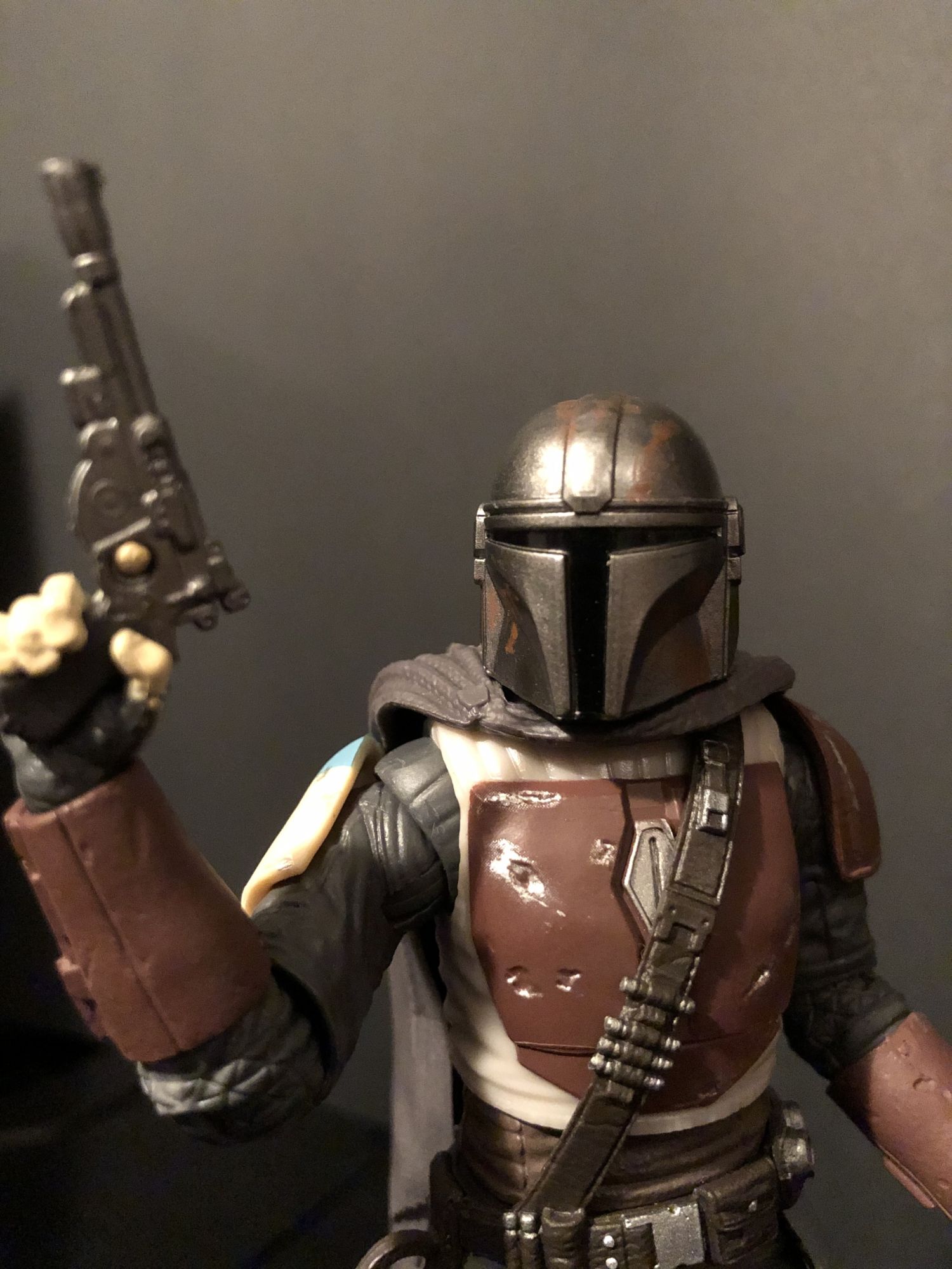 The Mandalorian figure really packs a punch, as he is quite hefty and very detailed. He does include a pistol as well as a rifle accessory. The pistol he comes with does have a holster that does include a strap to lock it in. The strap and holster are honestly revolutionary and hold great merit with me as I always used to lose the accessories as a kid.