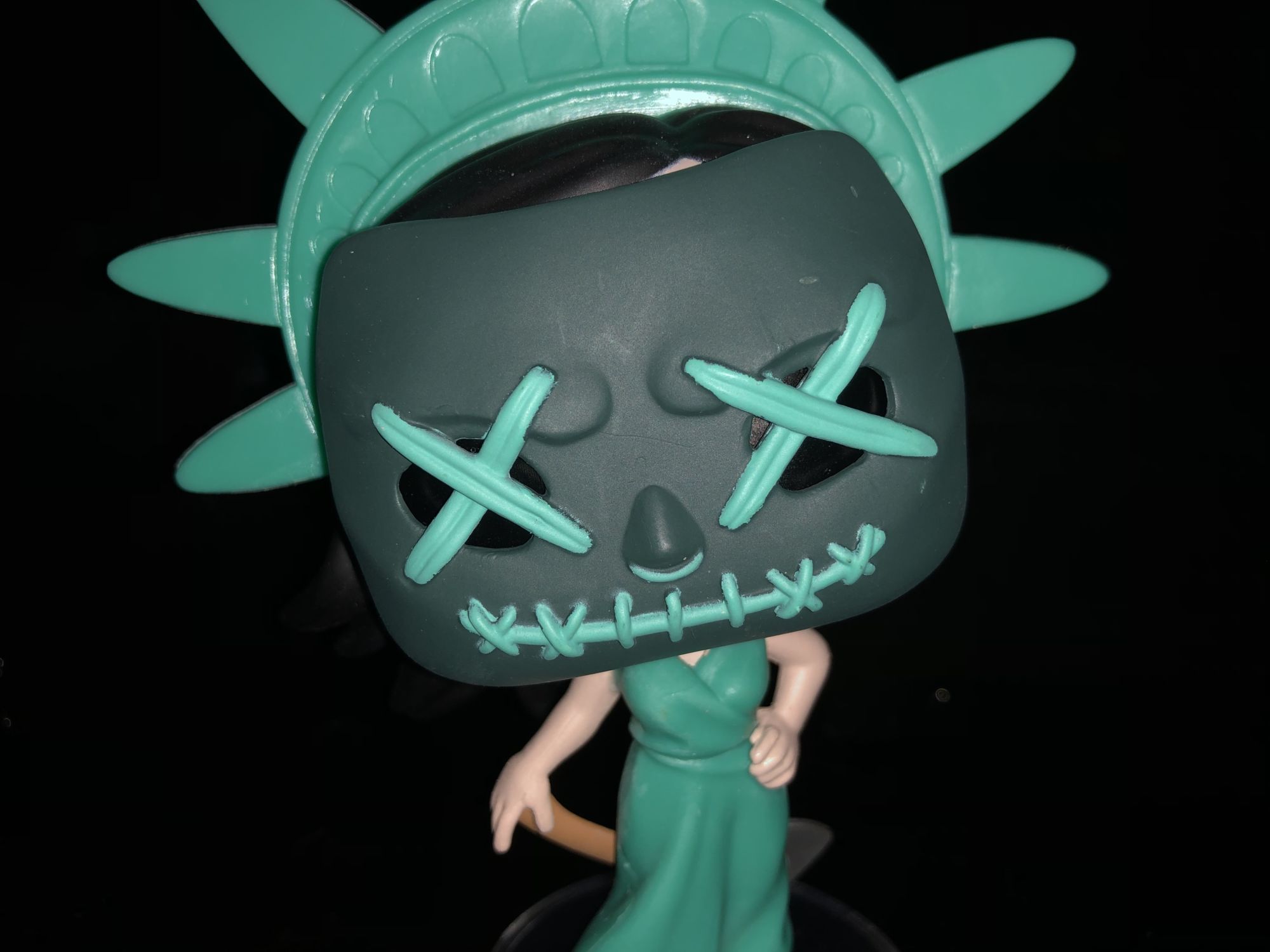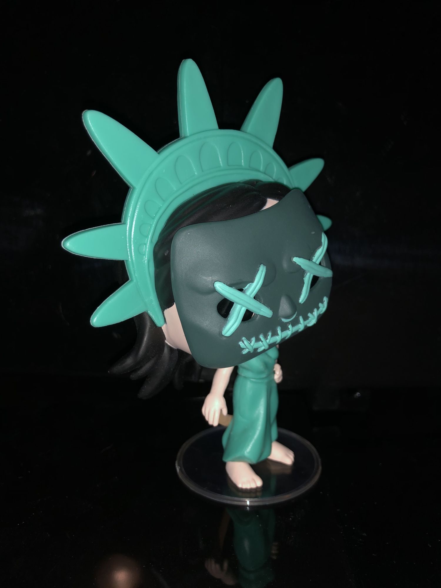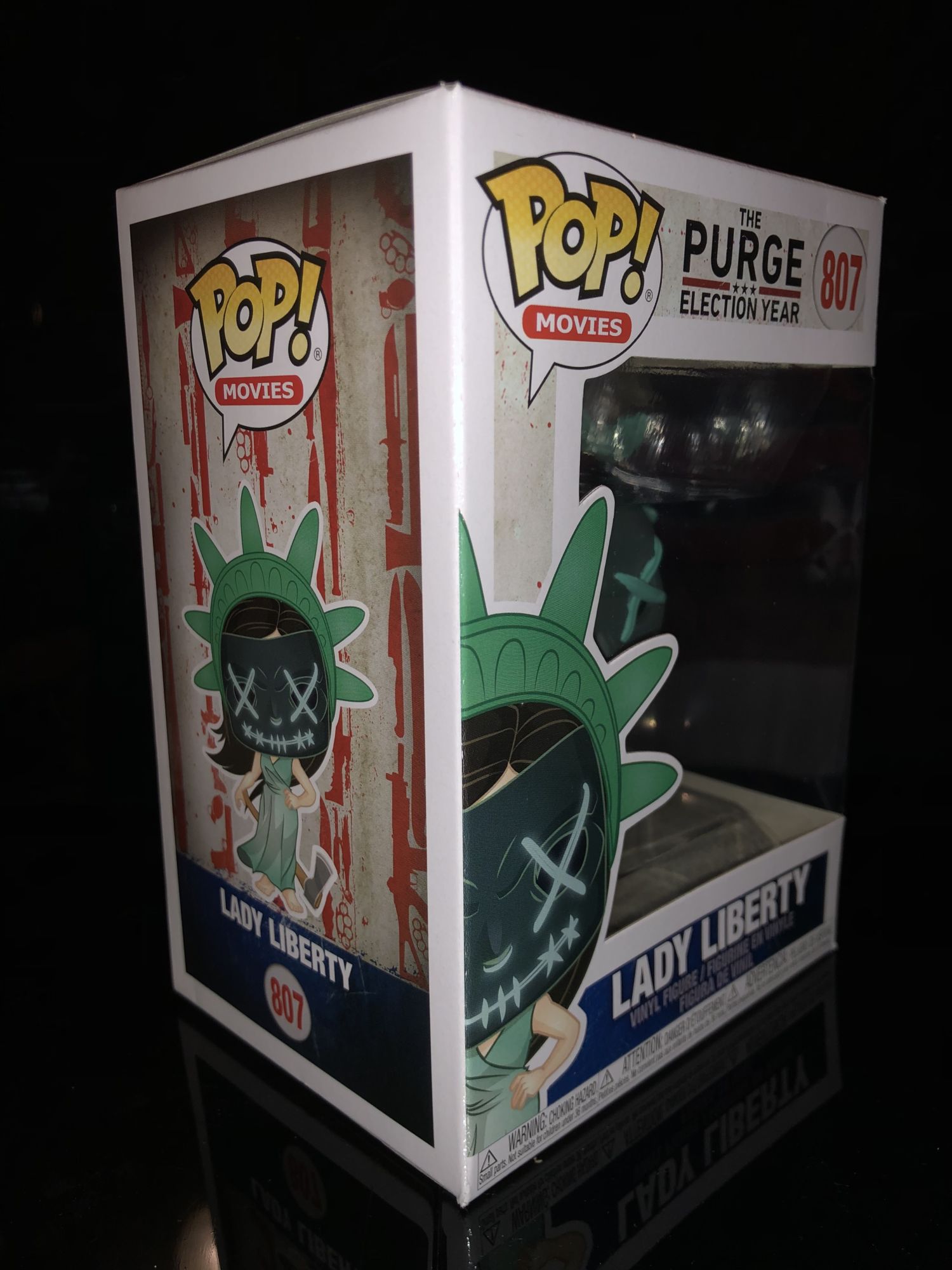 The Purge has had some amazing movies over the years, some good and some bad. The characters that come out of these movies have been very unique as we get to see get people their dark side out. I was surprised to see The Purge come out with collectibles this year through Funko. Five Funko Pops have already been announced earlier this year a lot of them coming from The Purge: Election Year. One figure, in particular, was very eye-catching to me and I just had to have it. Here is is the review for the badass Lady Liberty Funko Pop.
